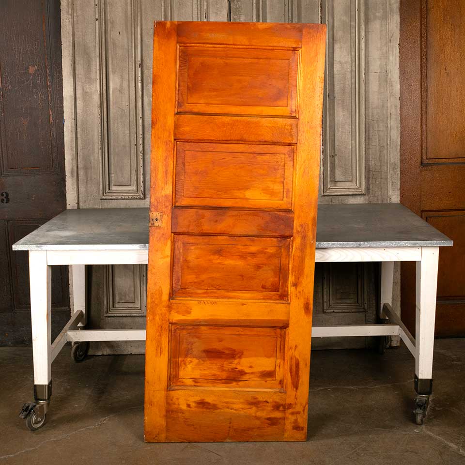 Architectural salvage antique four horizontal panel pine interior door measuring approx. 27" wide x 67 3/4" tall x 1 3/8" thick. See photos to evaluate condition.