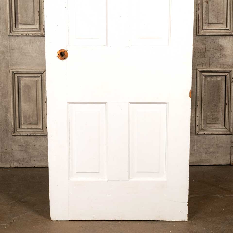 Architectural salvage antique painted wood four panel interior door measuring approx. 29 5/8" wide x 76 7/8" tall x 1 3/8" thick. See photos to evaluate condition.