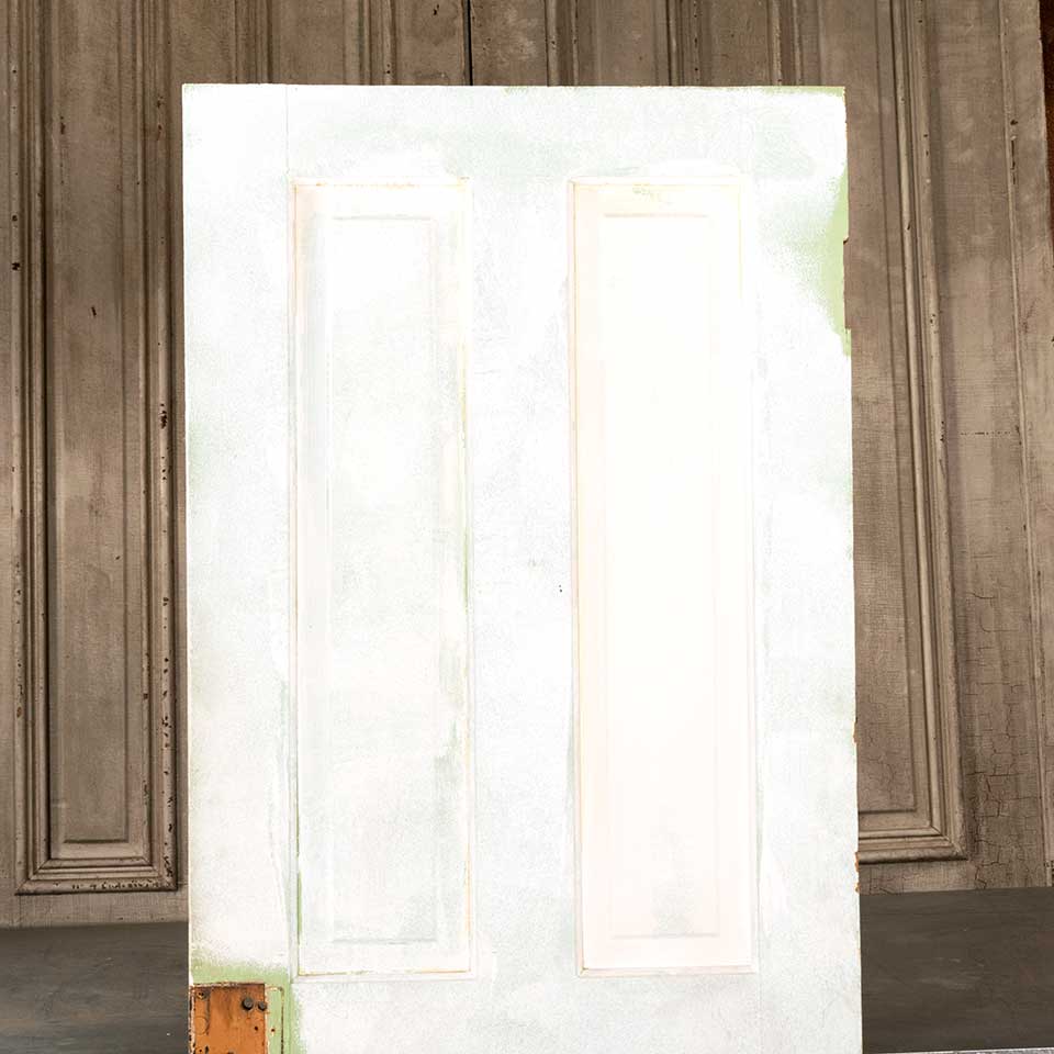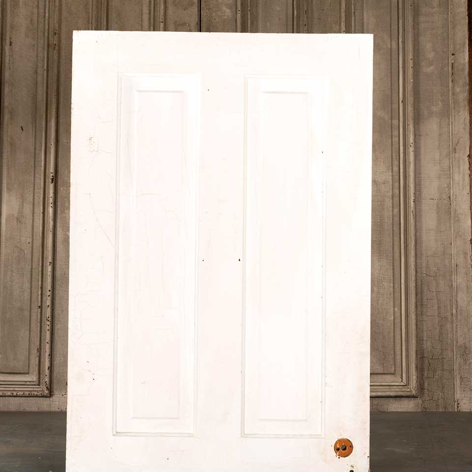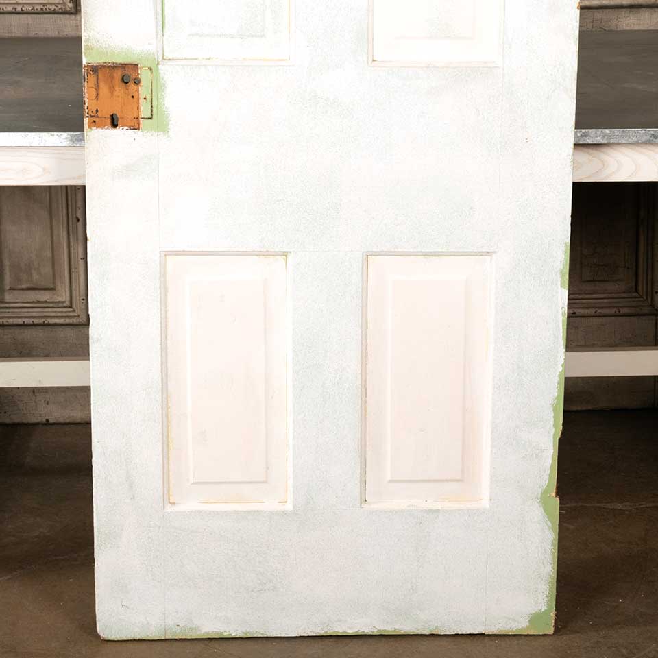 Architectural salvage antique four panel painted wood interior door measuring approx. 29 5/8" wide x 76 7/8" tall x 1 3/8" thick. See photos to evaluate condition.