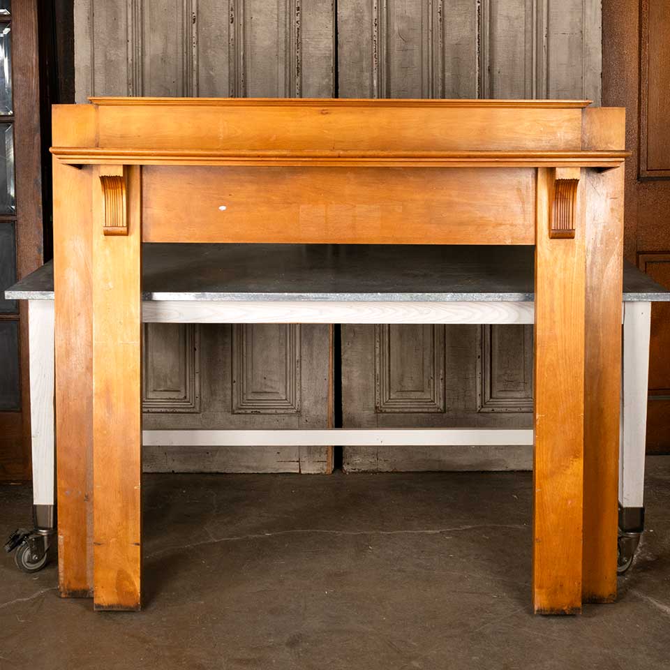 Architectural salvage antique wood fireplace mantel / mantle measuring approx. 61 1/4" wide x 54" tall x 9 3/4" front to back with an interior firebox opening 41 5/16" wide x 38 5/8" tall. See photos to evaluate condition.