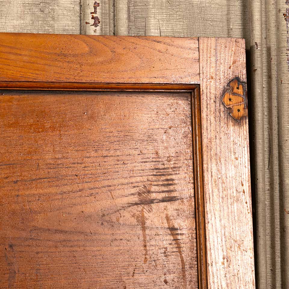 Architectural salvage antique two panel oak cabinet door measuring approx. 23" wide x 27 5/16" tall x 3/4" thick. See photos to evaluate condition.