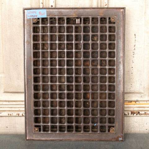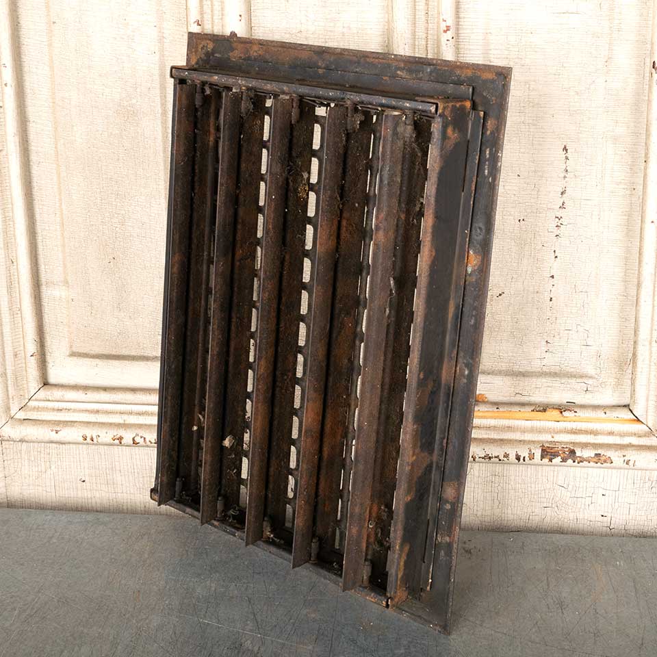 Architectural salvage vintage metal heat grate floor vent cover with operable louvers measuring approx. 10" x 14" (insert dimensions) and 12" x 15 7/8" (overall dimensions). Color and condition may vary, see photos to evaluate. Priced at $60/each.