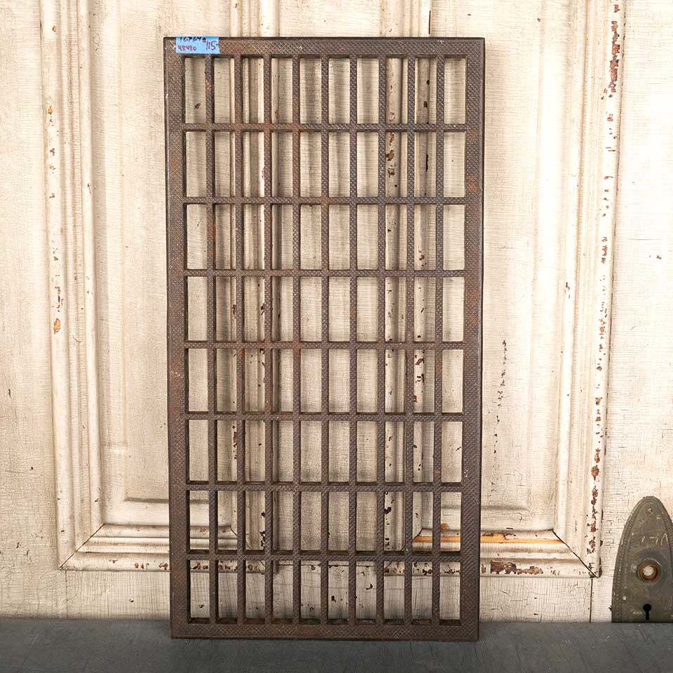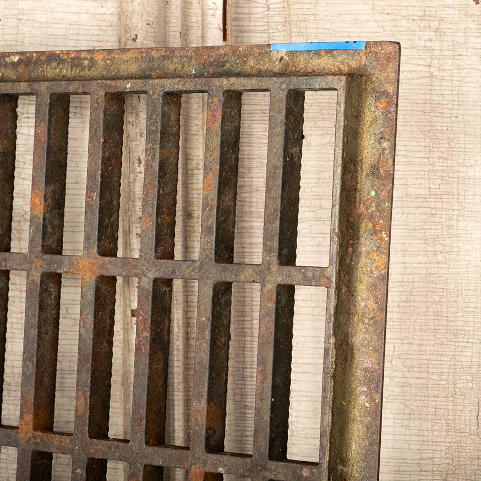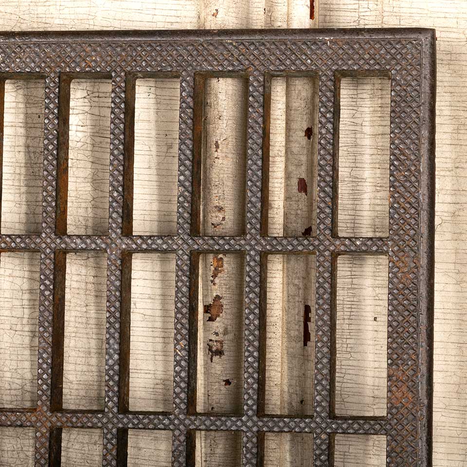 Architectural salvage antique cast iron cold air return floor grate vent cover measuring approx. 11 15/16" x 23 13/16" (insert dimensions) and 13" x 25" (overall dimensions). See photos to evaluate condition.