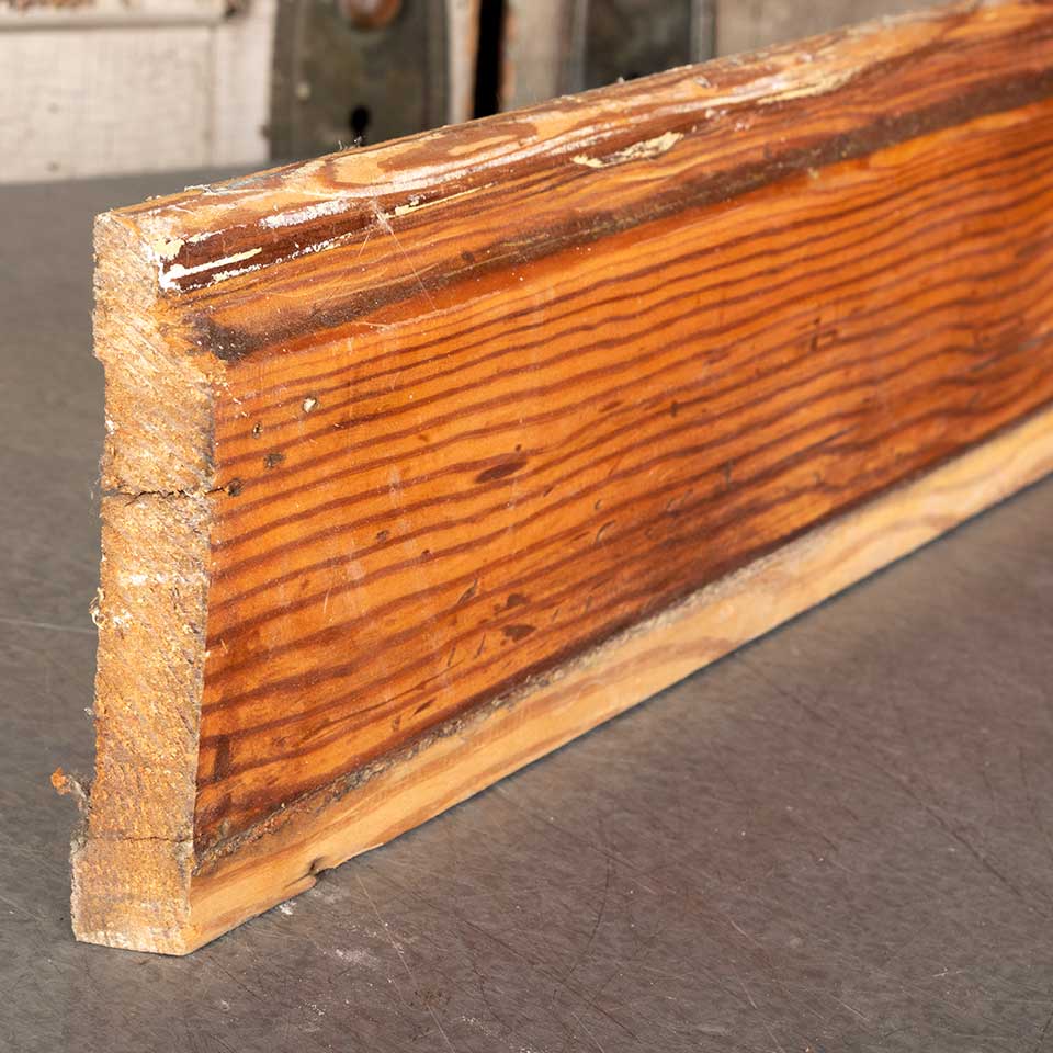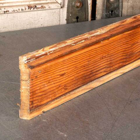 Architectural salvage unpainted antique pine wood baseboard molding trim measuring approx. 5 1/4" tall x 3/4" thick. Quantities, lengths and prices as follows: 1 @ 50" ($22.50); 1 @ 57" ($42.75); 2 @ 62" ($46.50); 1 @ 69" ($51.75); 1 @ 70" ($52.50; 1 @ 89" ($66.75); 1 @ 98" ($73.50); 2 @ 125" ($93.75); 1 @ 138" ($103.50); 1 @ 139" ($104.25); 1 @ 148" ($111); 1 @ 150" ($112.50); 1 @ 167" (125.25).