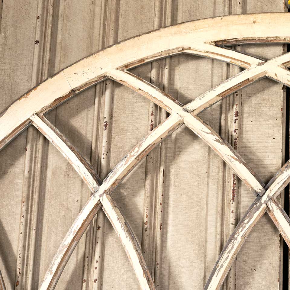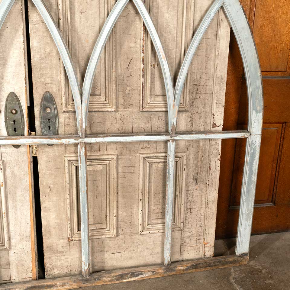 Architectural salvage antique large Gothic divided lite wood window sash measuring approx. 88 1/4" wide x 75" tall x 1 3/4" thick. See photos to evaluate condition.