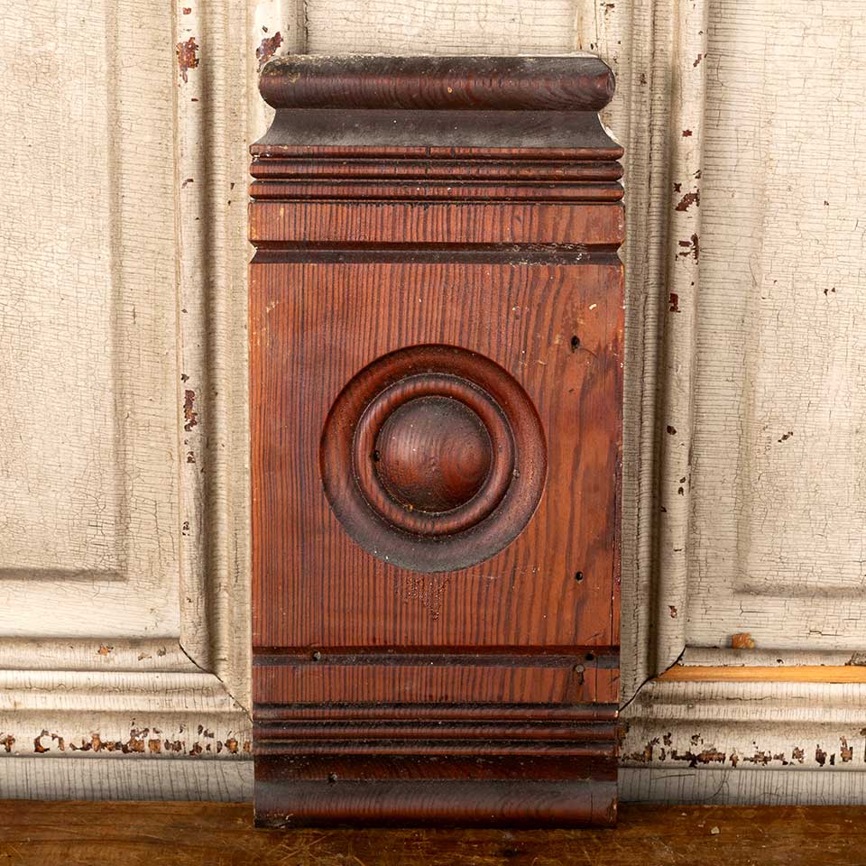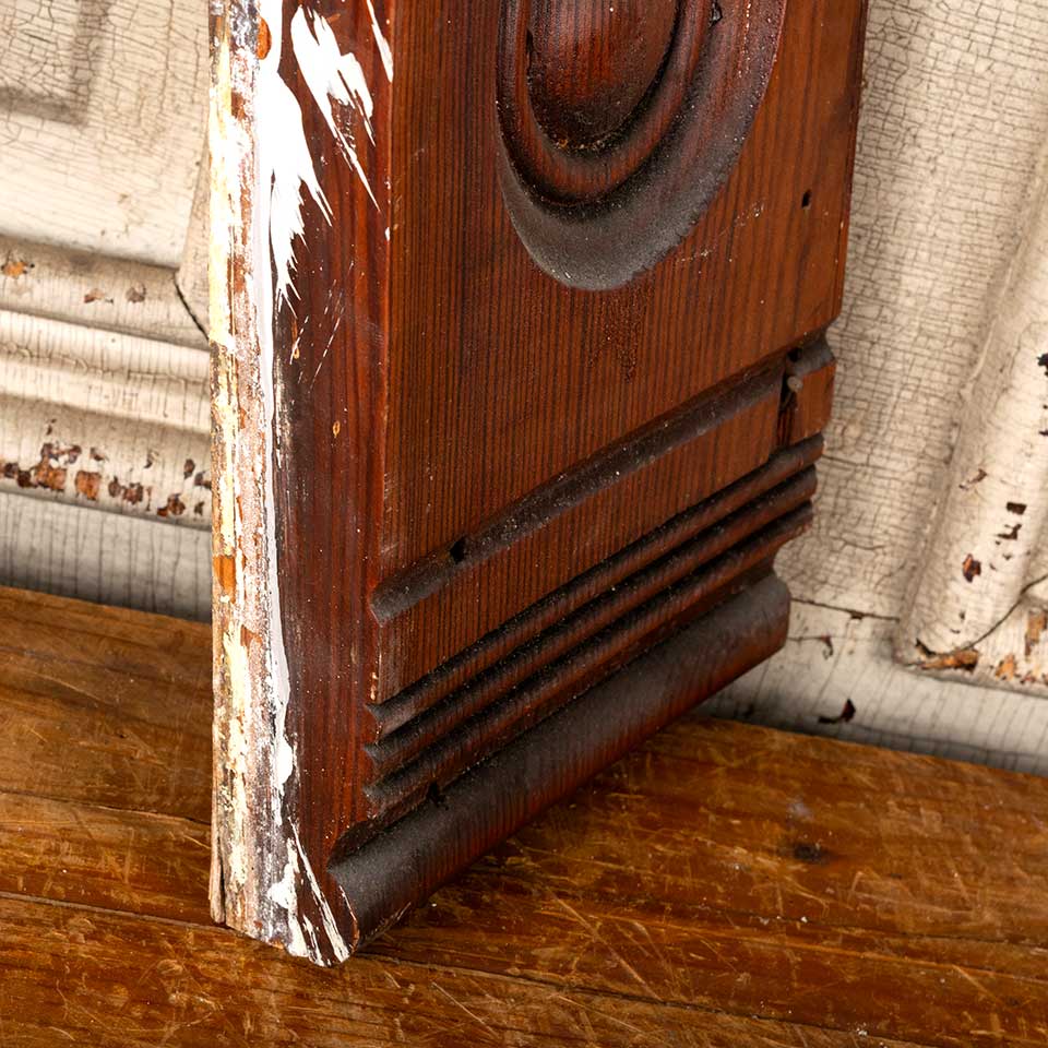 Architectural salvage antique interior window or door wood rosette trim block measuring approx. 5 7/8" wide x 12" tall x 1 3/8" front to back. Color and condition may vary, see photos to evaluate. Priced at $45/each.