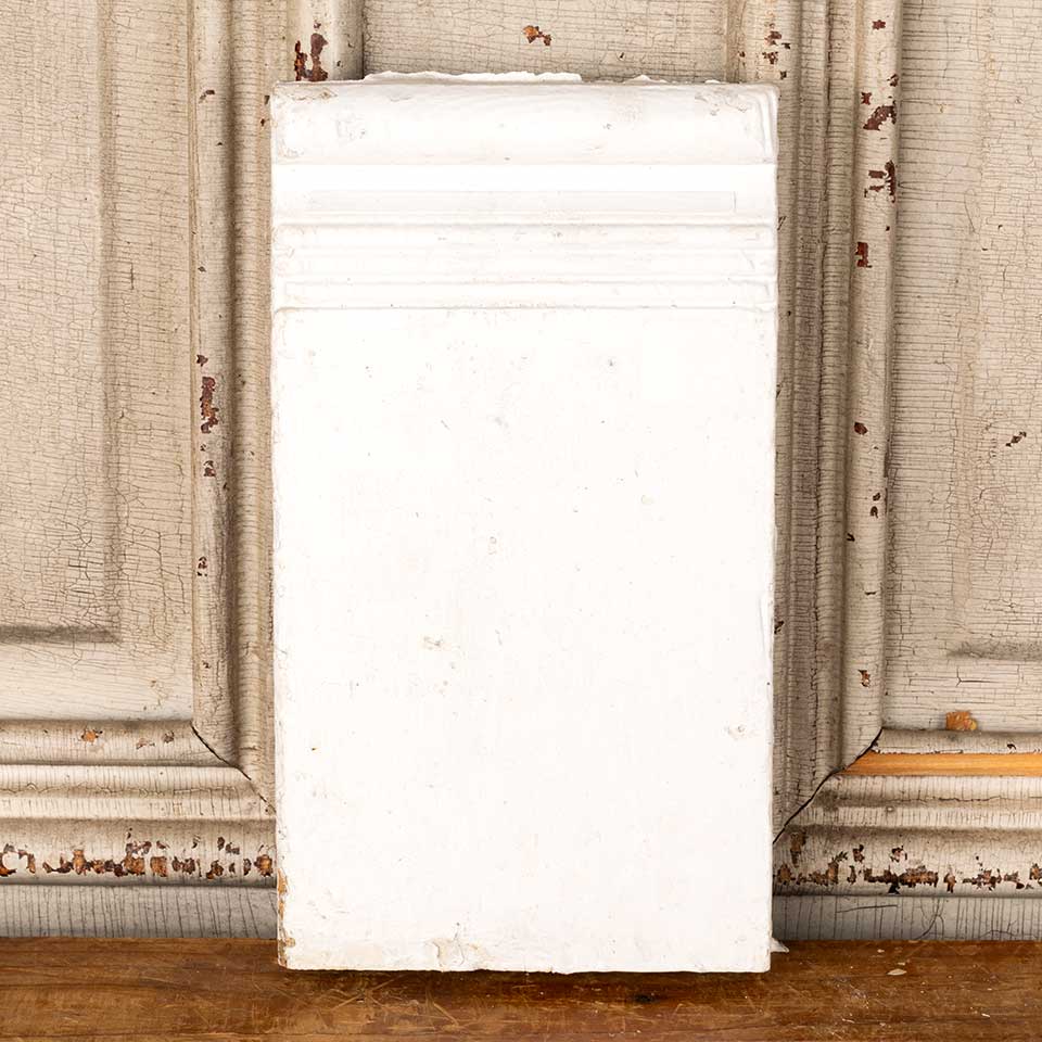 Architectural salvage antique painted wood interior door plinth trim block measuring approx. 5 5/8" wide x 10 1/8" tall x 1 3/8" thick. Color and condition may vary, see photos to evaluate. Priced at $15/each.