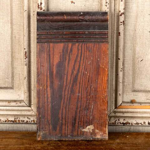 Architectural salvage antique wood interior door plinth trim block measuring approx. 5 3/4" wide x 10 1/4" tall x 1 3/8" thick. Color and condition may vary, see photos to evaluate. Priced at $20/each.