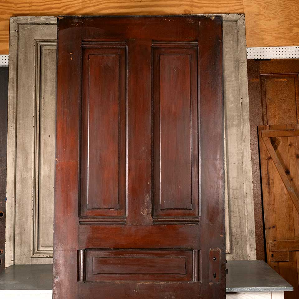 Architectural salvage antique five panel wood interior door measuring approx. 38 3/4" wide x 96" tall x 2" thick. See photos to evaluate condition.