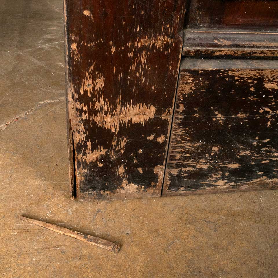 Architectural salvage antique five panel wood interior door measuring approx. 39 3/4" wide x 95 1/8" tall x 2" thick. There's a piece of wood broken off the bottom of the closing side of the door and some split wood along the bottom. See photos to evaluate condition.