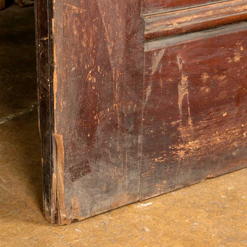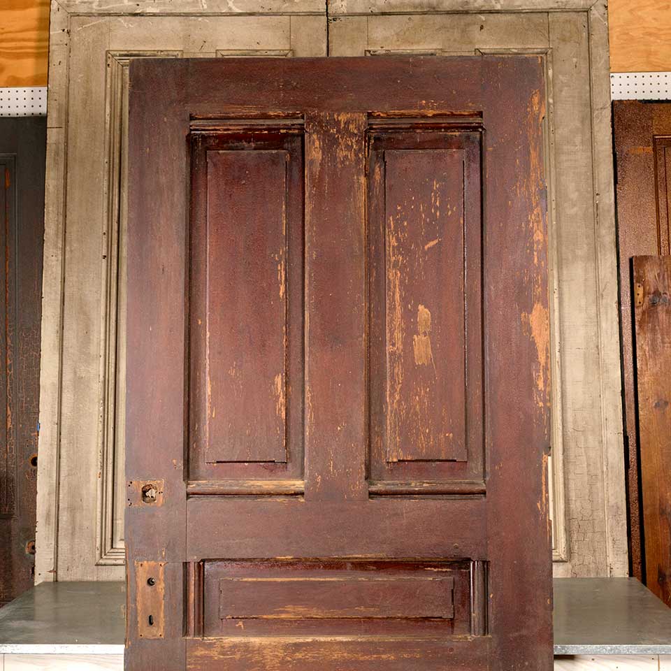 Architectural salvage antique five panel wood interior door measuring approx. 39 3/4" wide x 88 5/8" tall x 2" thick. There's some wood loss along the closing edge of the door and a crack in the wood near the mortise lock on one face of the door. See photos to evaluate condition.