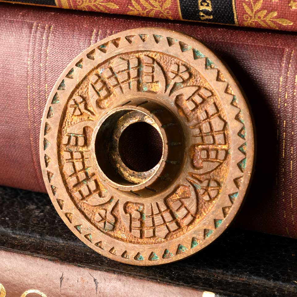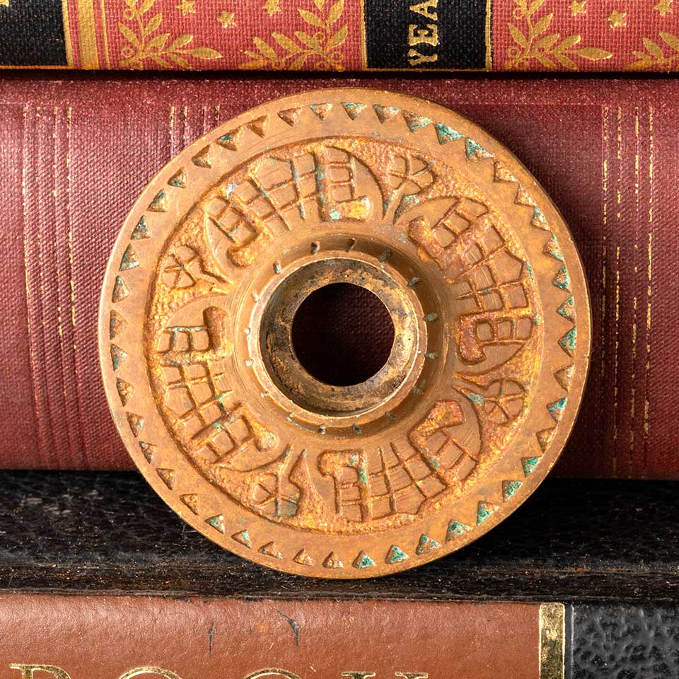 Architectural salvage antique bronze Victorian Eastlake doorknob rosette door hardware measuring approx. 2" in diameter with a 3/4" diameter collar. Color and condition vary, see photos to evaluate condition. Priced at $25/each.