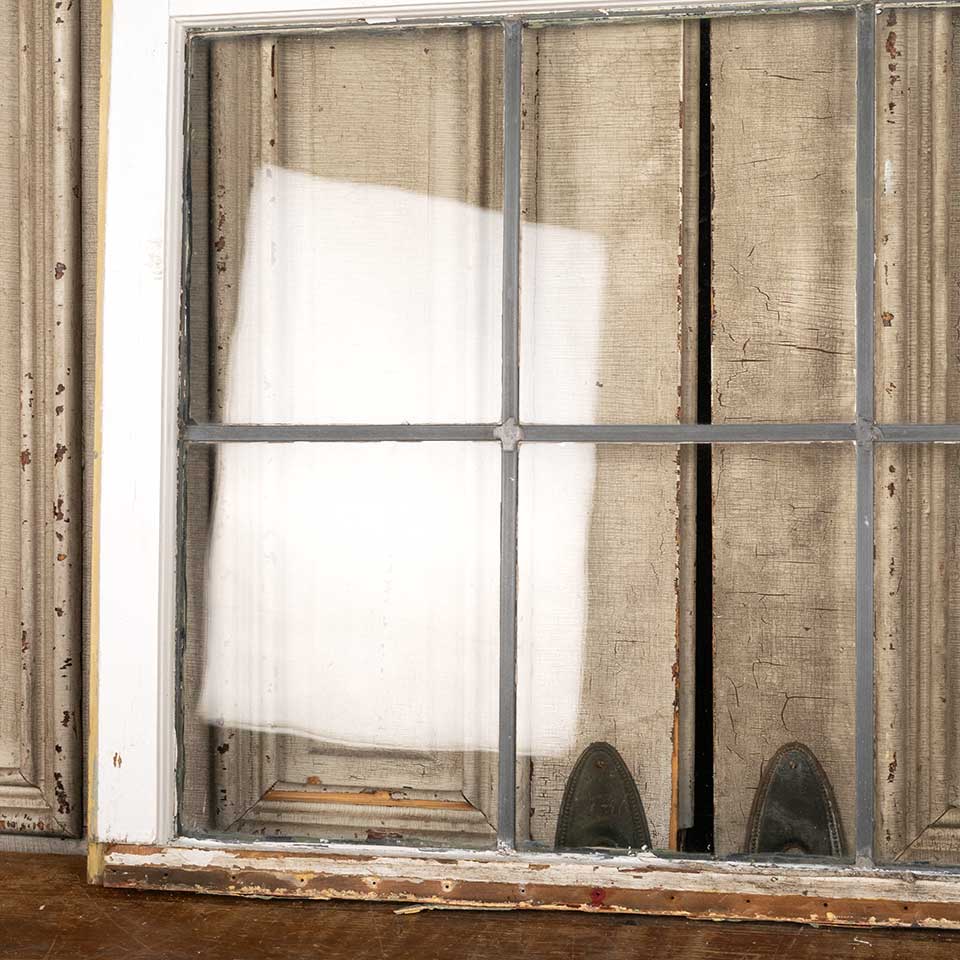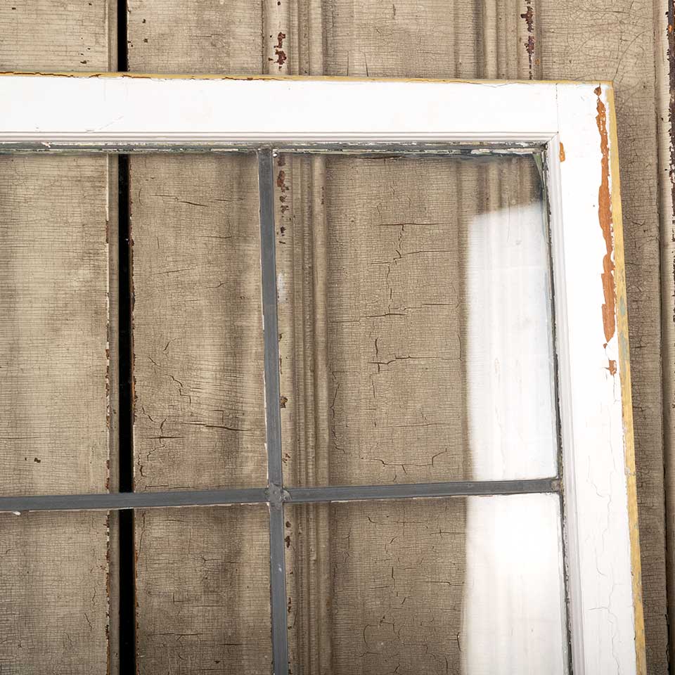 Architectural salvage antique wood window sash with leaded glass measuring approx. 34 3/8" wide x 27 1/4" tall x 1 3/8" thick. See photos to evaluate condition.