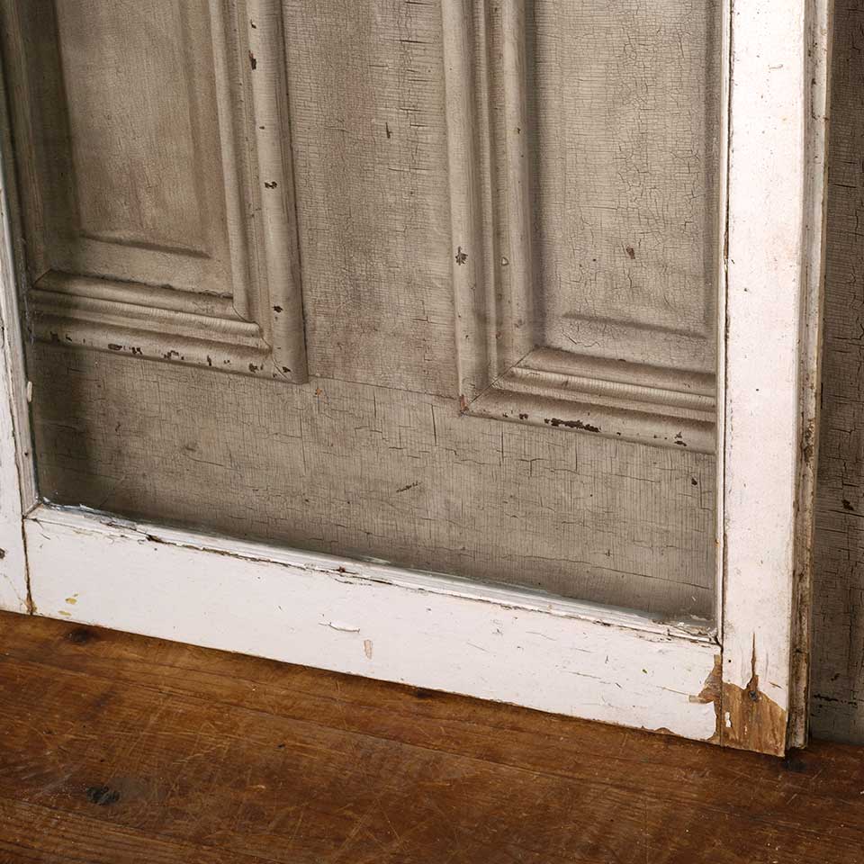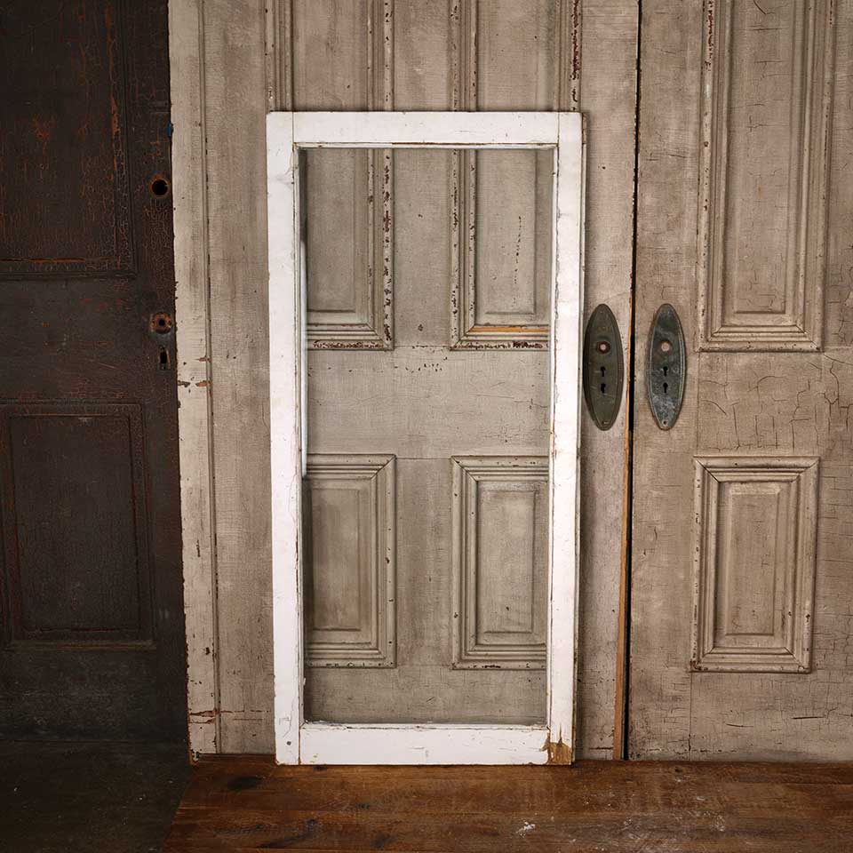 Architectural salvage antique painted wood full-view glass cabinet door measuring approx. 24 1/4" wide x 51 1/2" tall x 7/8" thick. See photos to evaluate condition.