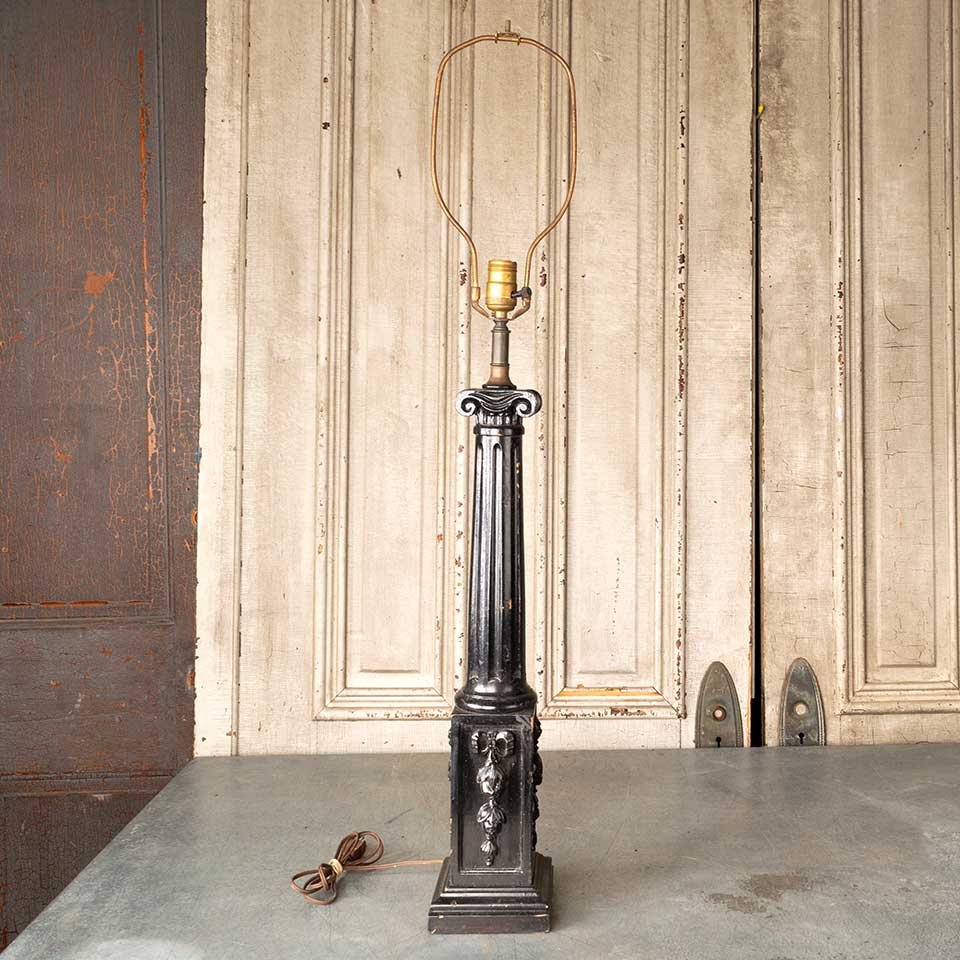 Architectural salvage vintage working painted wood Ionic column table lamp measuring approx. 39" tall (overall) with a 5 1/4" square base. Salvaged lighting should be inspected by a licensed electrician prior to use.