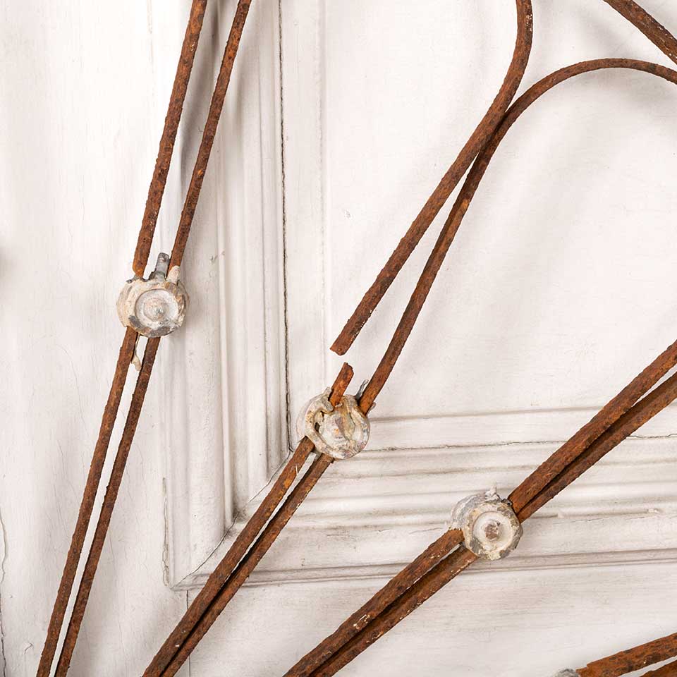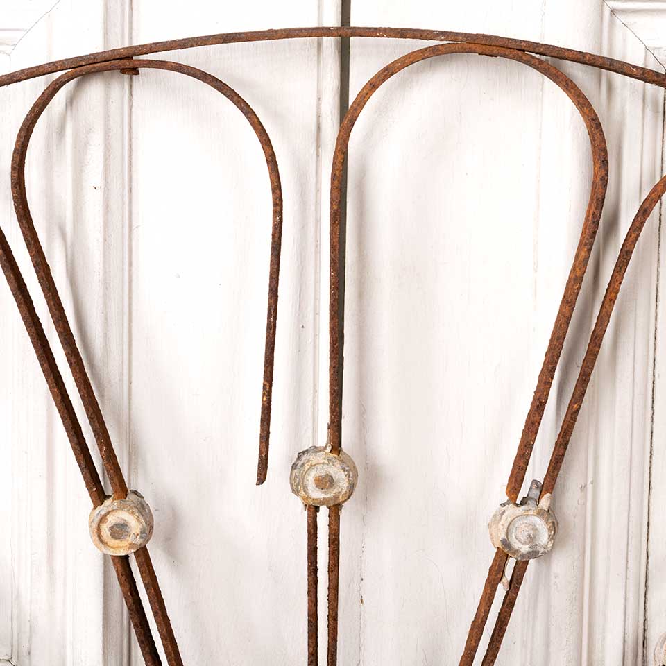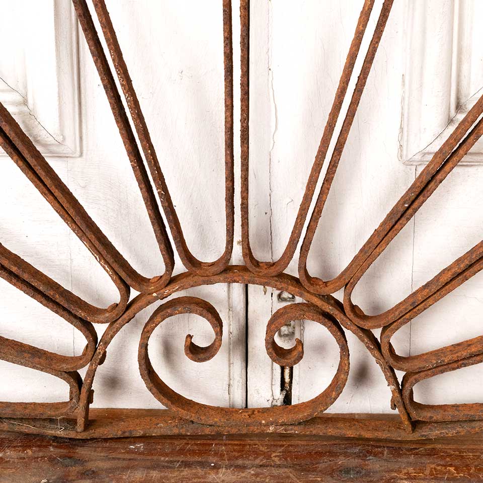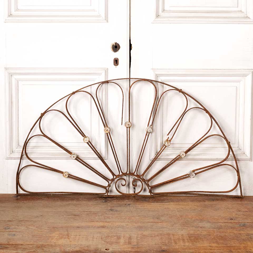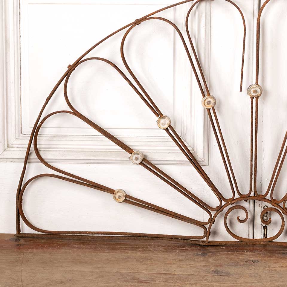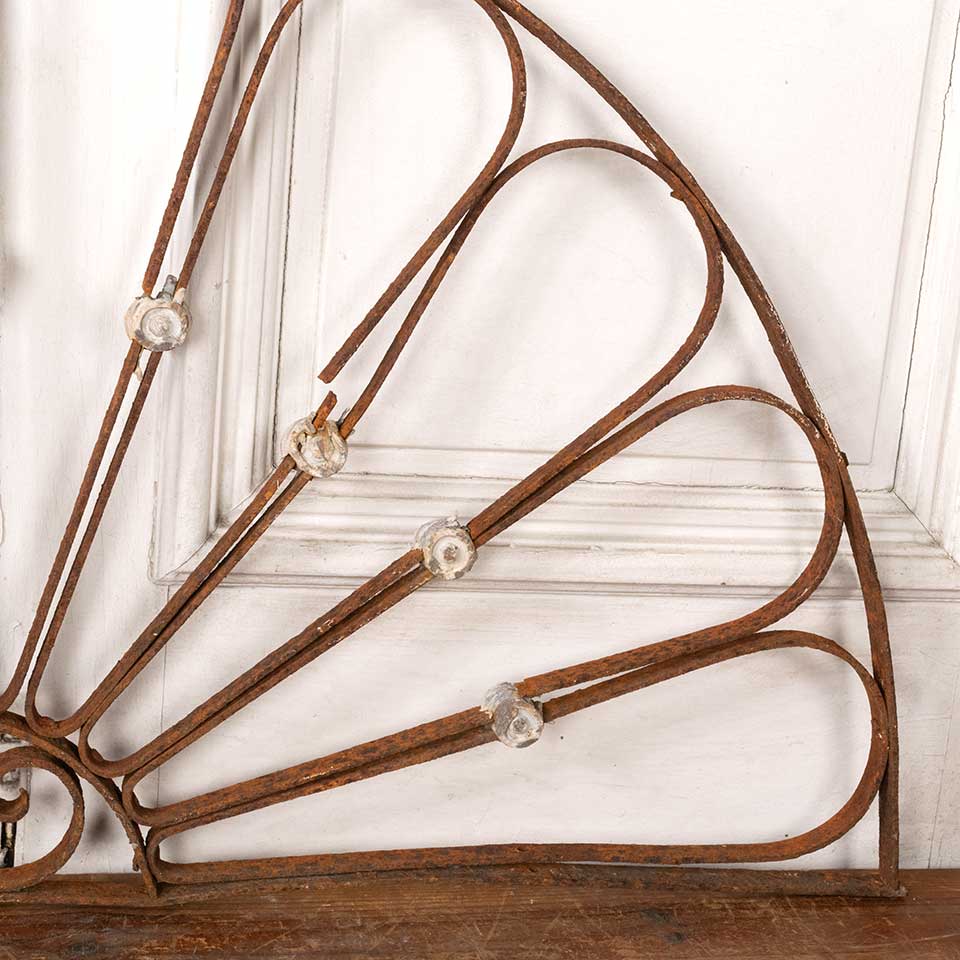 Architectural salvage antique wrought iron arched ornamental panel measuring approx. 46 3/4" wide x 24" tall x 1" front to back. Some of the pieces are broken. See photos to evaluate condition.