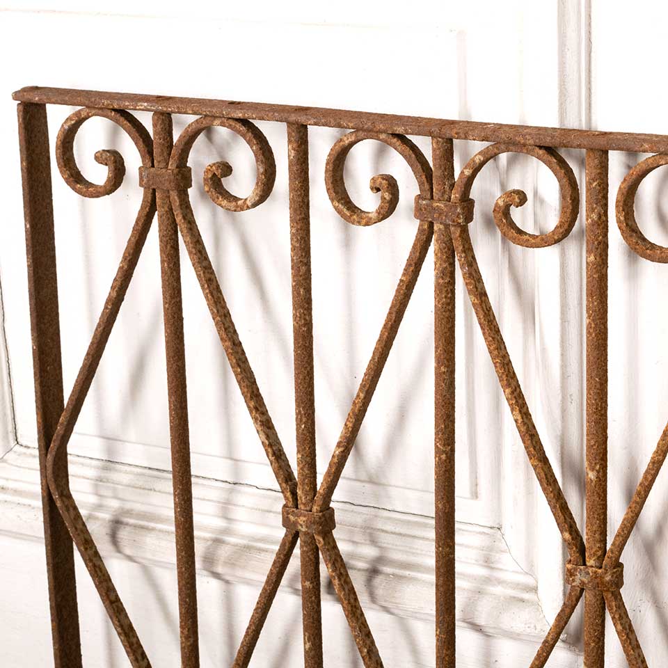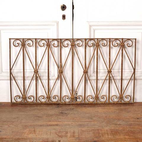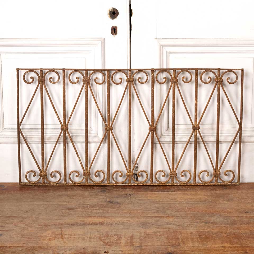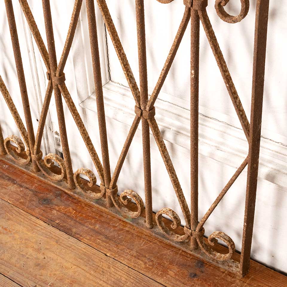 Architectural salvage antique wrought iron ornamental panel measuring approx. 39 7/8" wide x 20 7/8" tall x 1" front to back. See photos to evaluate condition.