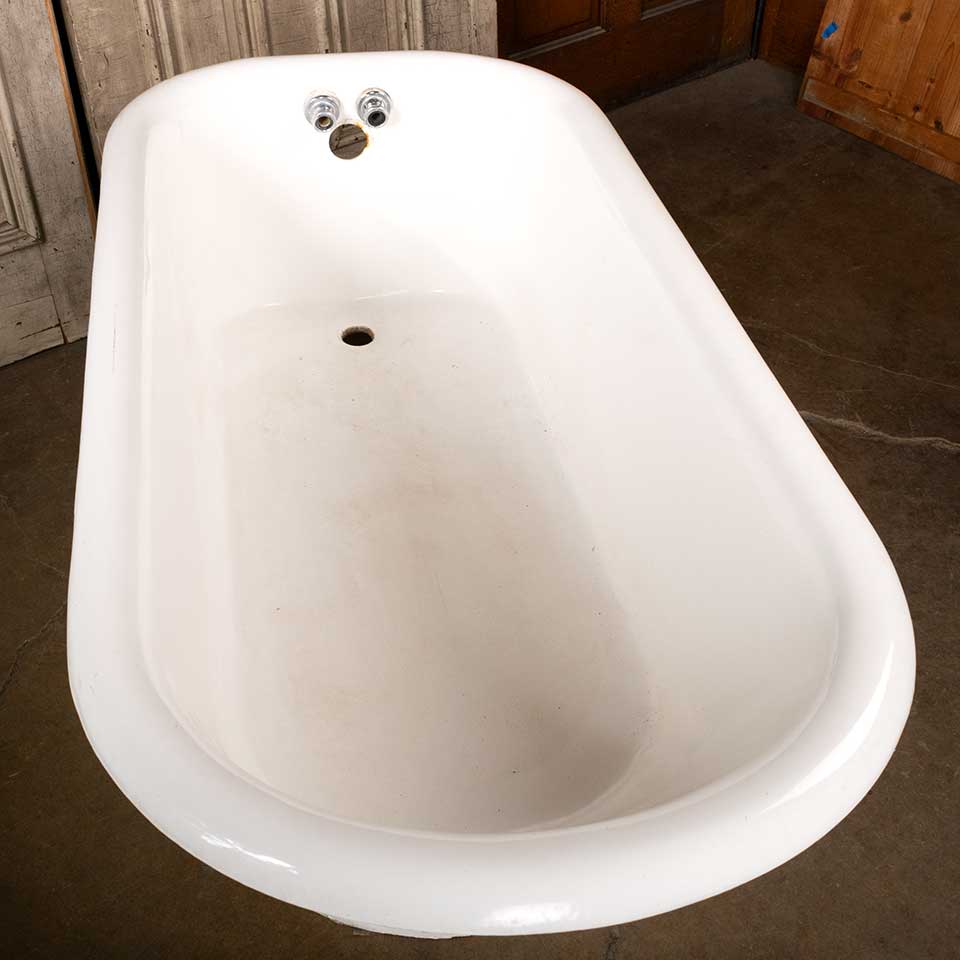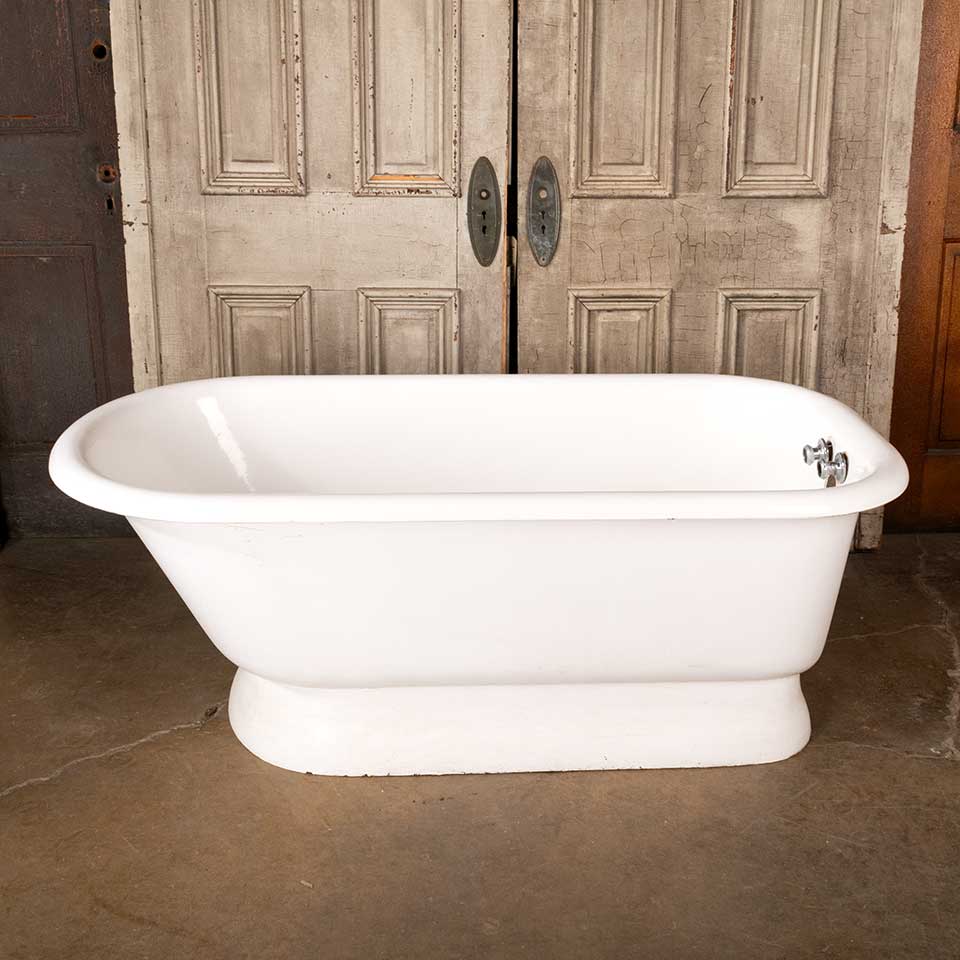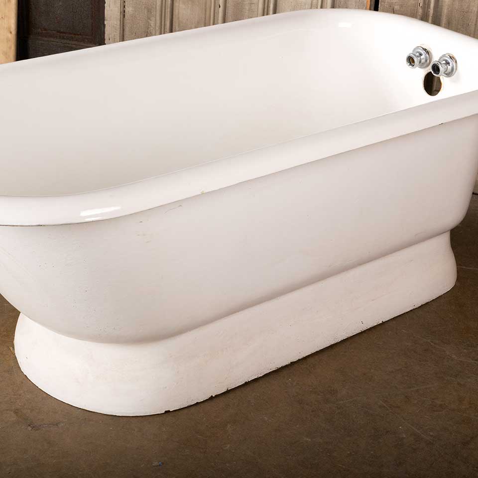 Architectural salvage antique cast iron skirted apron bathtub measuring approx. 30 1/4" wide x 60" long x 22 3/4" tall. This tub may need to be refinished on the inside. See photos to evaluate condition.
