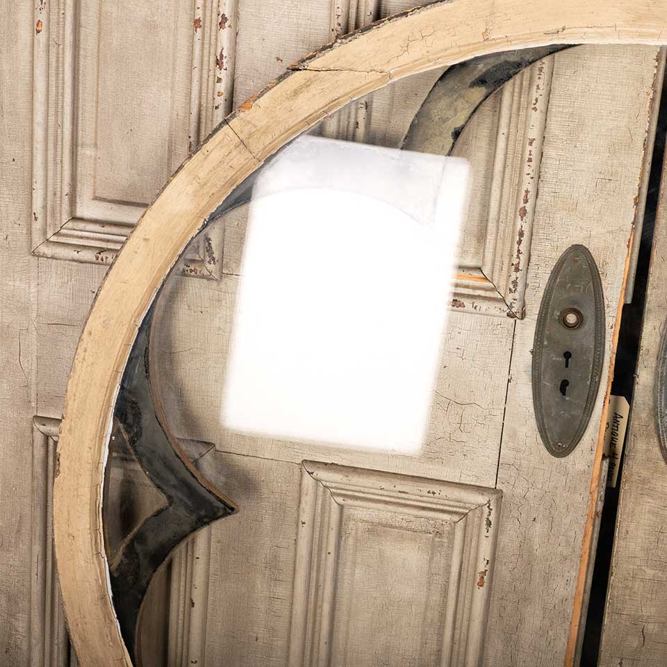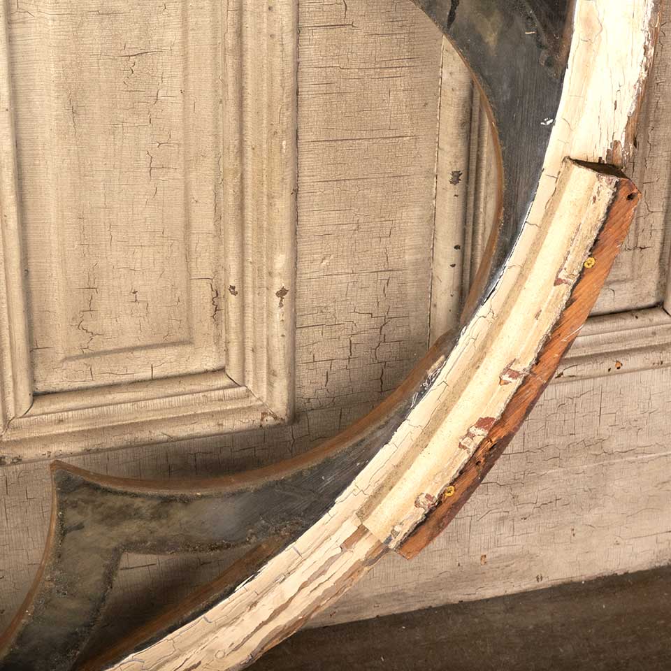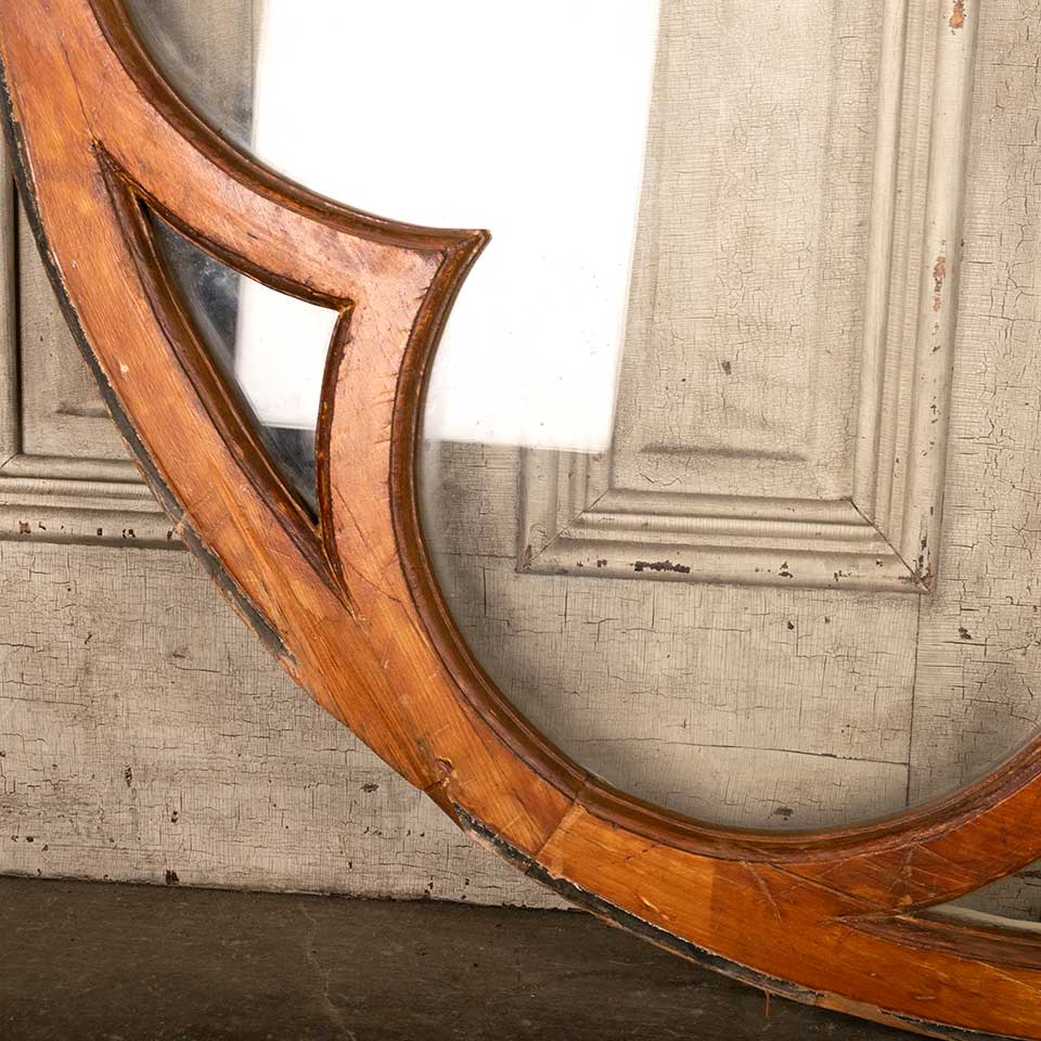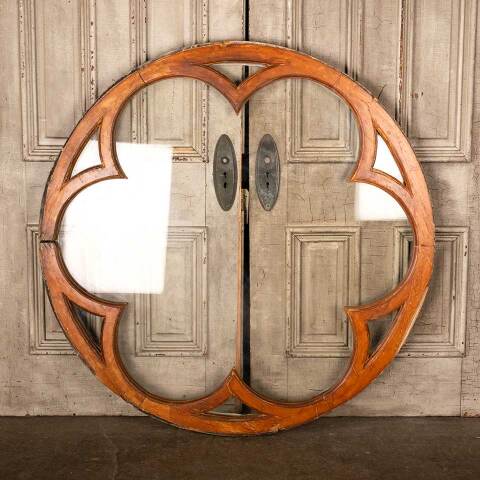 Architectural salvage large round antique wood Gothic rosette window with six rounded foils measuring approx. 50" in diameter x 2" thick. This window was salvaged from the Shelby County Courthouse in Sidney, Ohio. See photos to evaluate condition.