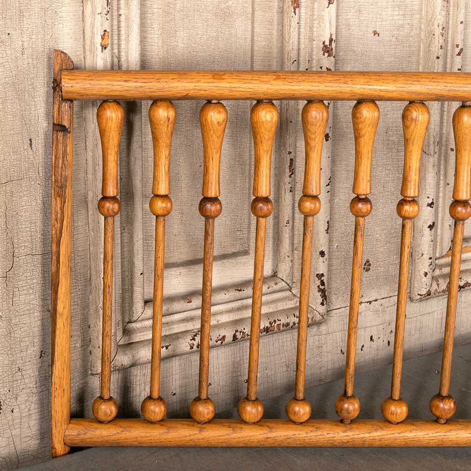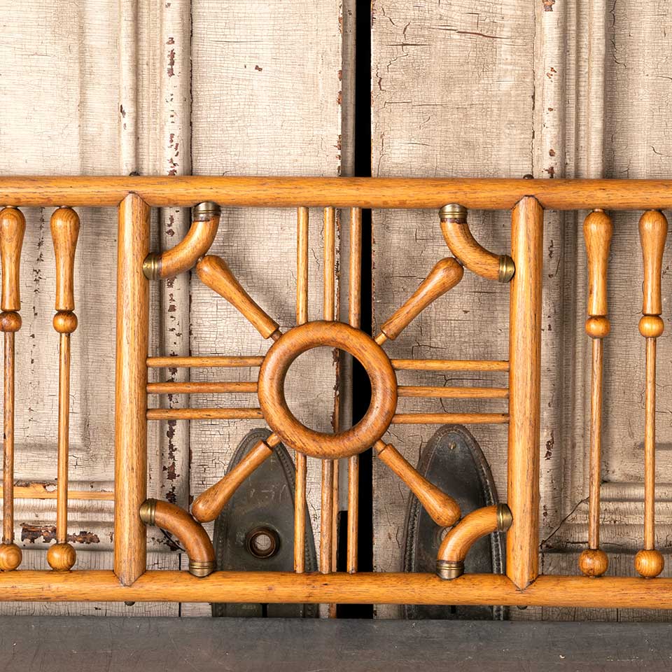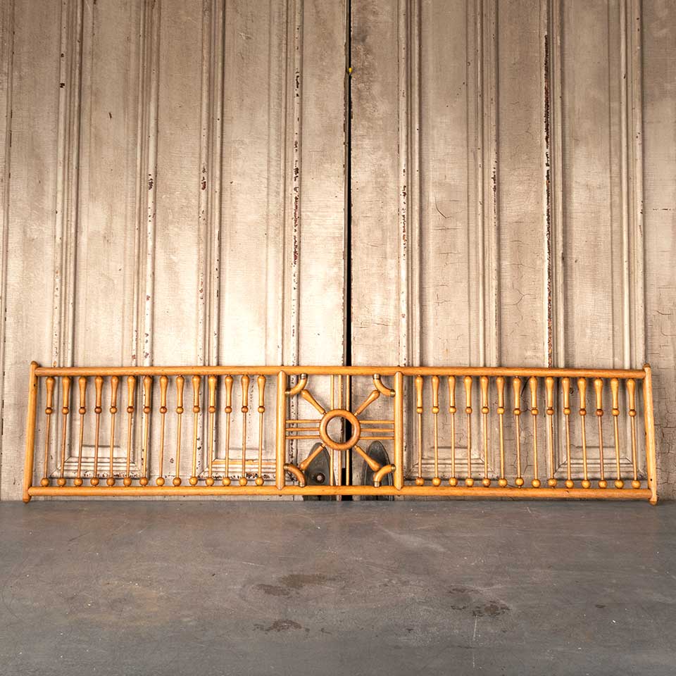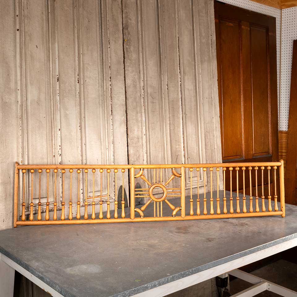 Architectural salvage antique oak wood interior fretwork panel measuring approx. 59 1/4" wide x 13 1/4" tall x 1 1/8" front to back. There's some wood loss on the ends. See photos to evaluate condition.