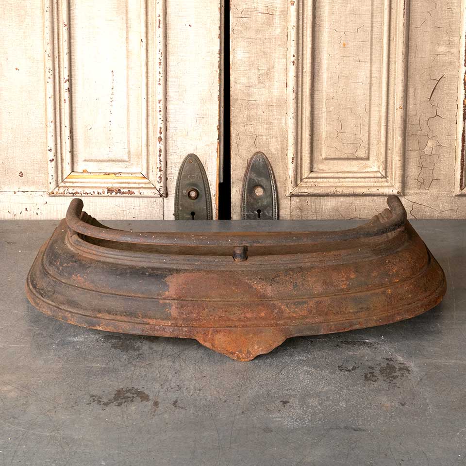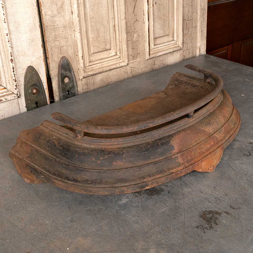 Architectural salvage antique cast iron fireplace fender measuring approx. 28 1/4" wide x 6 1/4" tall x 15 1/2" front to back. See photos to evaluate condition.
