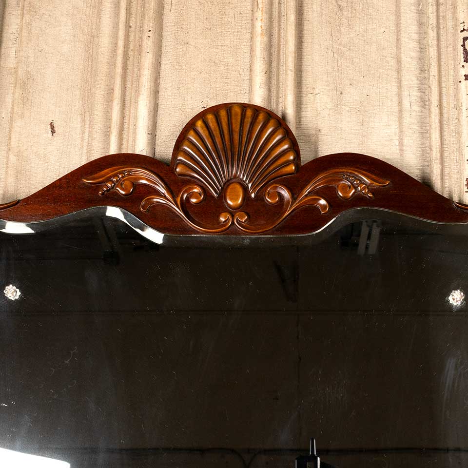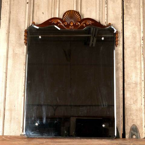 Architectural salvage antique Empire Case Goods beveled glass mirror with with wood pediment measuring approx. 27" wide x 36 1/2" tall x 1" front to back. Original tag on back indicates that this piece was originally sold through Star Furniture Company in Columbus, Ohio. See photos to evaluate condition.