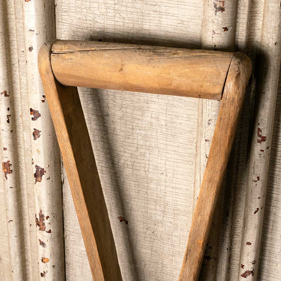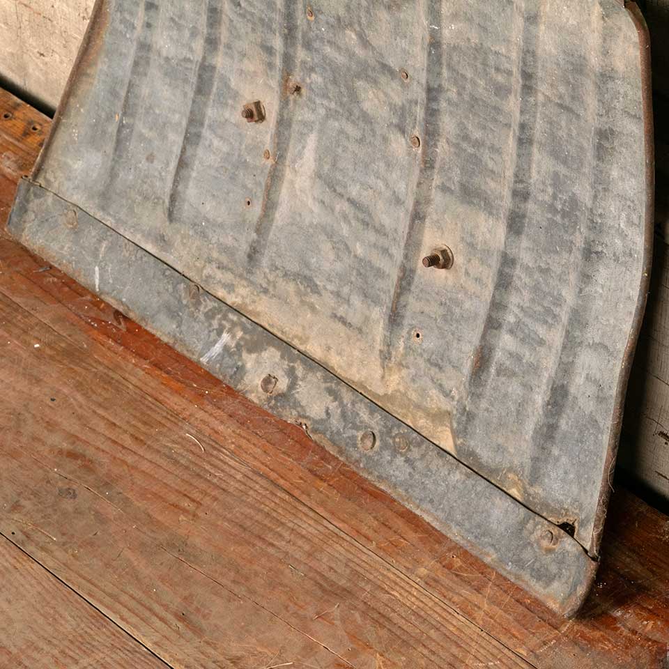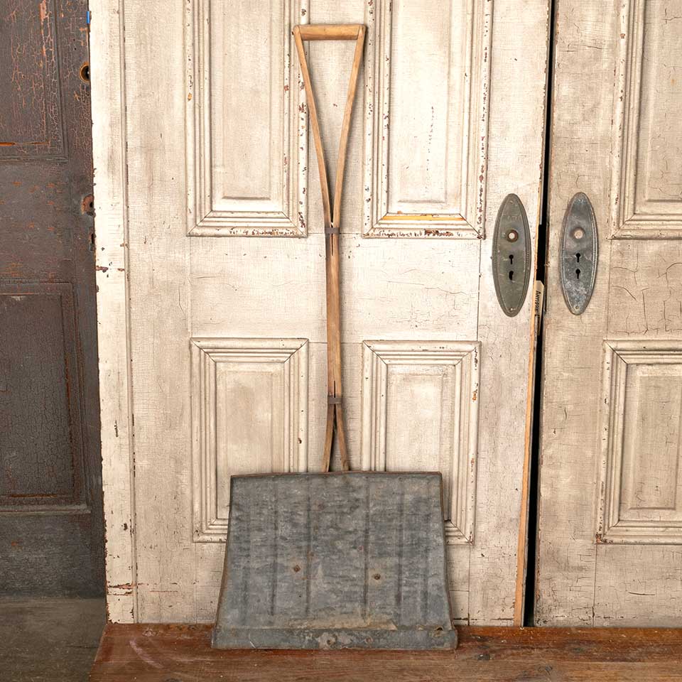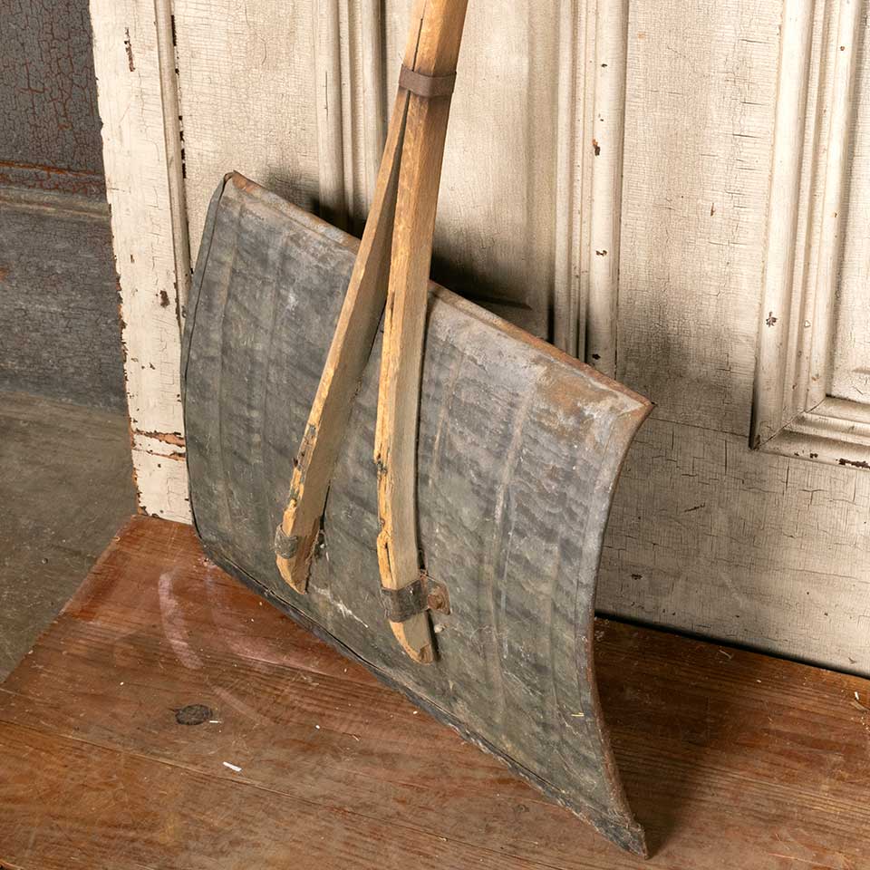 Antique primitive wood and metal snow shovel measuring approx. 20 1/4" wide x 50 1/4" tall x 2" front to back. See photos to evaluate condition.