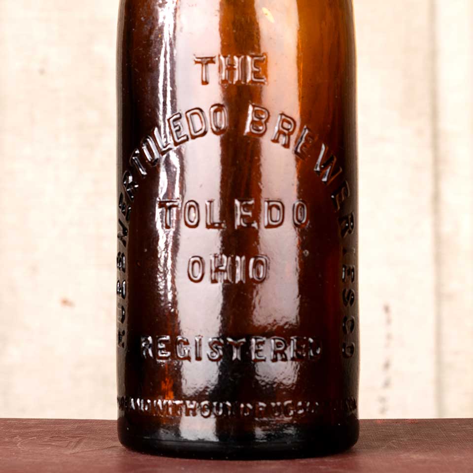 The Huebner Toledo Breweries Co., Toledo, Ohio glass beer bottle measuring approx. 9 1/4" tall x 2 5/8" in diameter overall. See photos to evaluate condition.