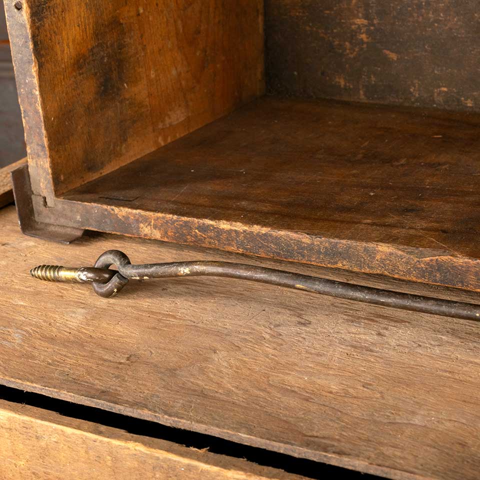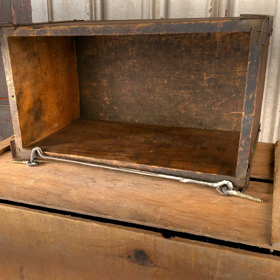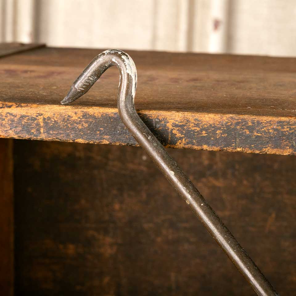 Architectural salvage antique long hook and eye latch hardware measuring approx. 12" long x 1 1/2" tall x 5/8" front to back. Can be used for windows, gates, cabinets, doors, shutters, etc. Color and condition vary. Priced at $25/each.