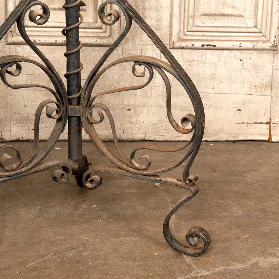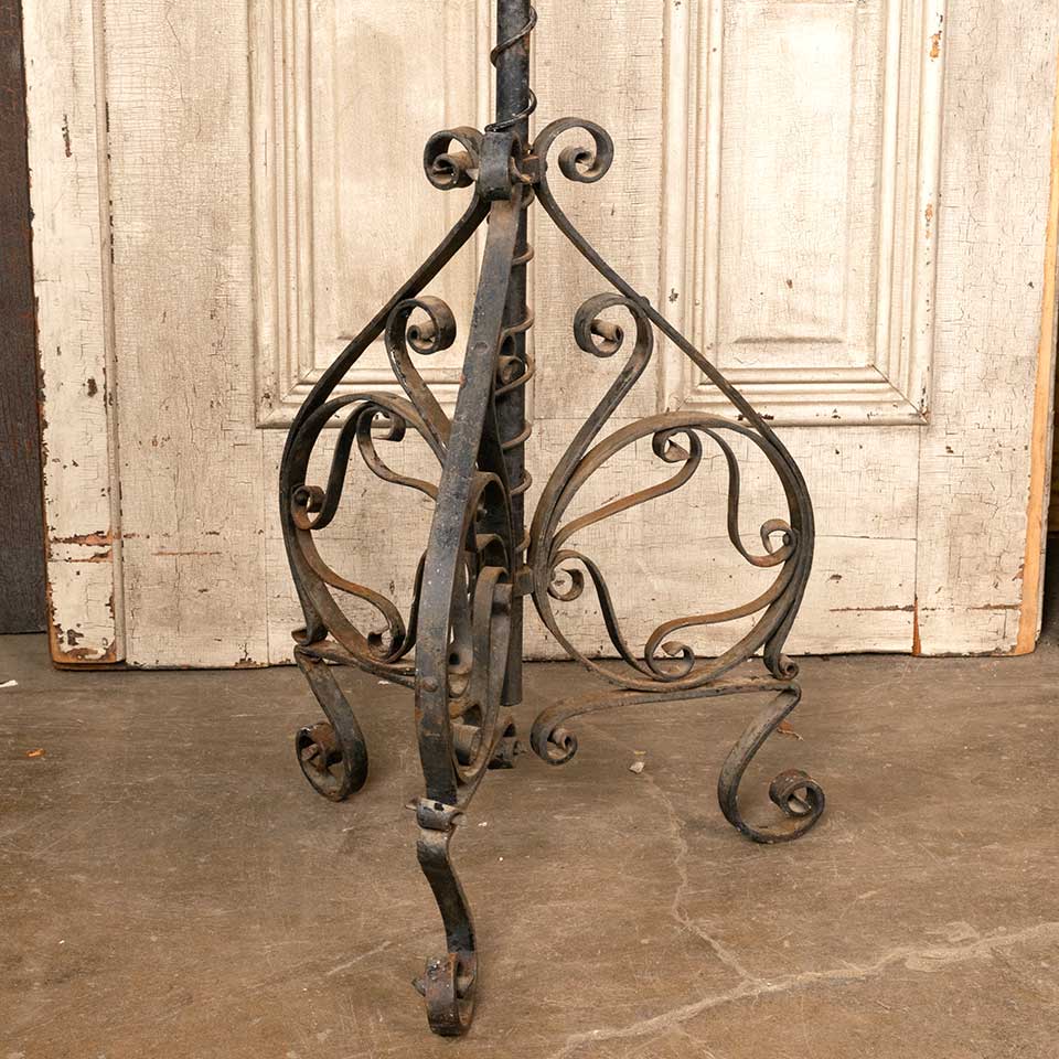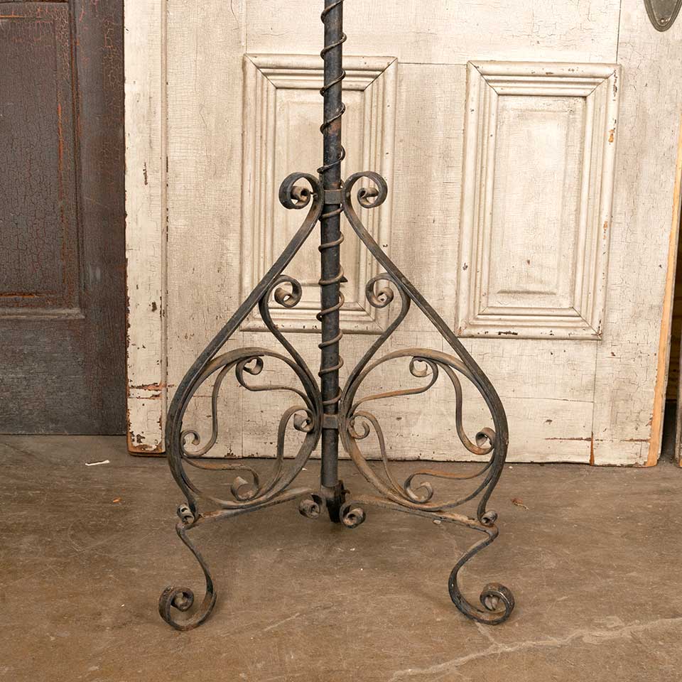 Architectural salvage antique wrought iron stand measuring approx. 49" tall with a 15 1/2" diameter base. See photos to evaluate condition.