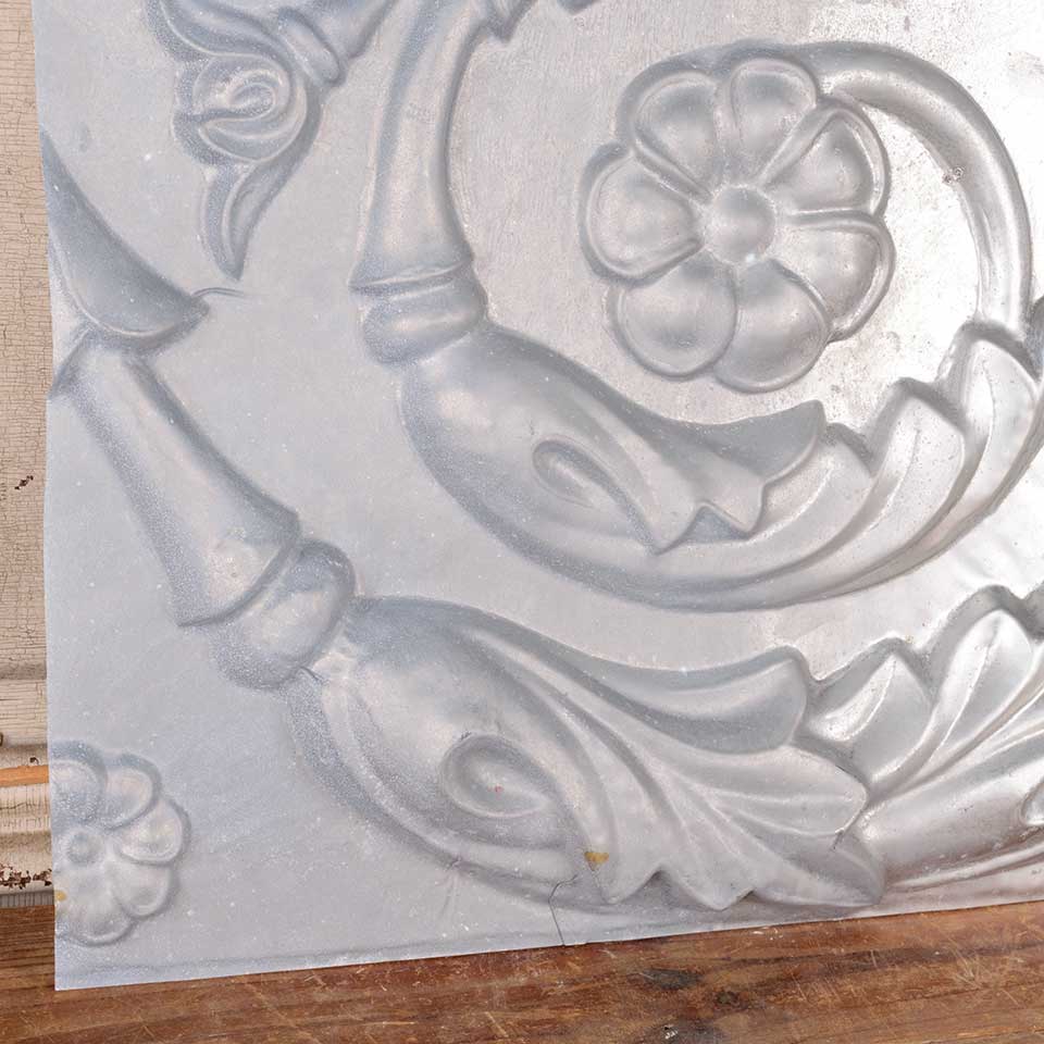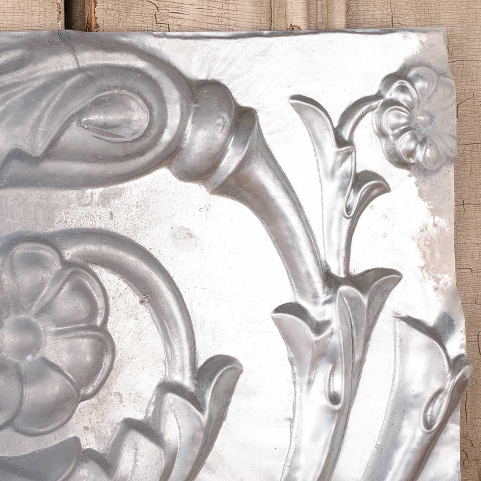 Architectural salvage antique old new stock pressed / stamped tin metal frieze panel with high relief measuring approx. 20 1/2" wide x 16 1/2" tall x 1 1/2" front to back. Color and condition may vary. Priced at $75/each.