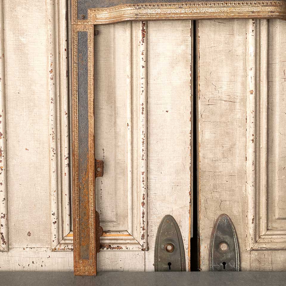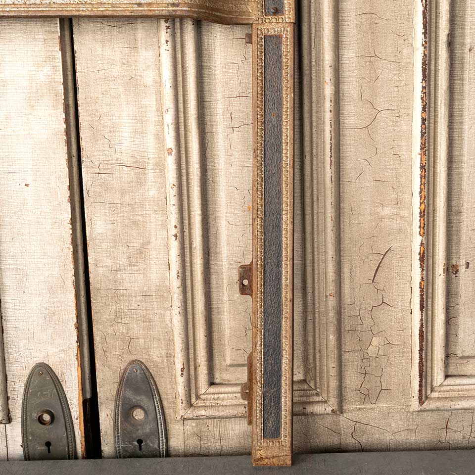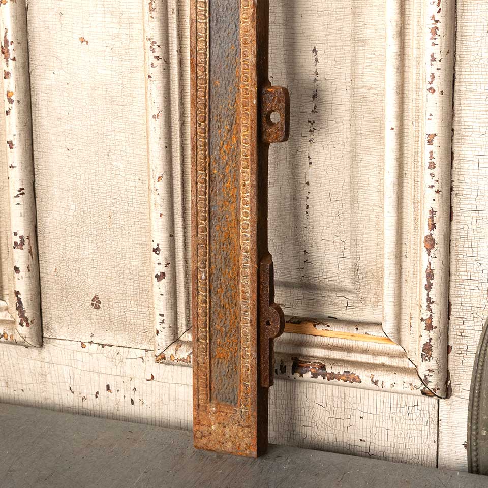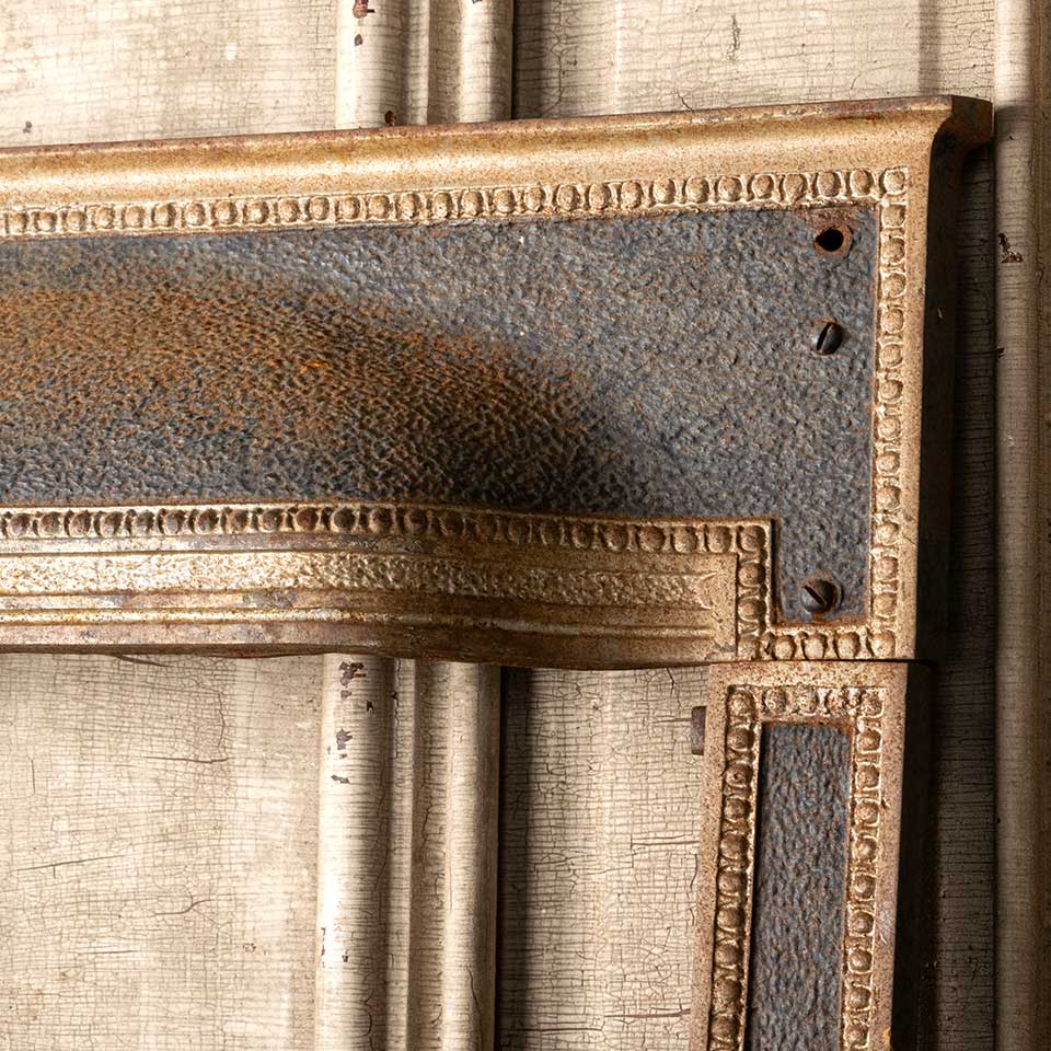 Architectural salvage antique cast iron fireplace surround measuring approx. 25 3/8" wide x 30 3/8" tall x 3" front to back. The interior firebox opening measures approx. 20" wide x 24 3/8" tall. See photos to evaluate condition.