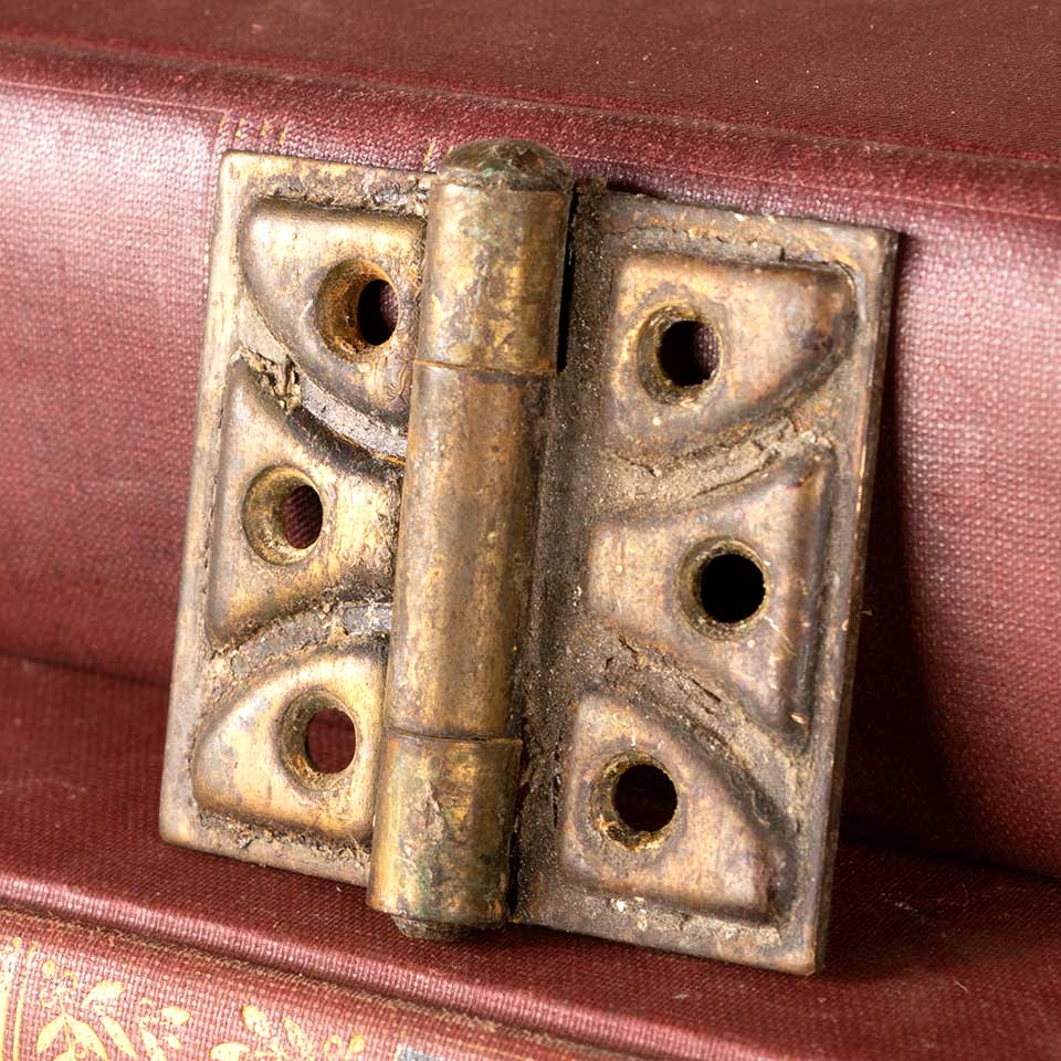 Architectural salvage antique metal butterfly furniture hinge measuring 2" wide x 1 3/4" tall (2" tall including hinge pin). Color and condition may vary. Priced at $10/each.