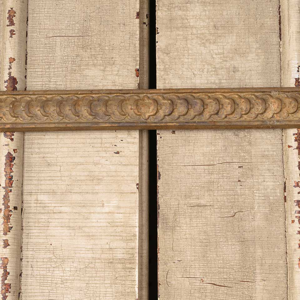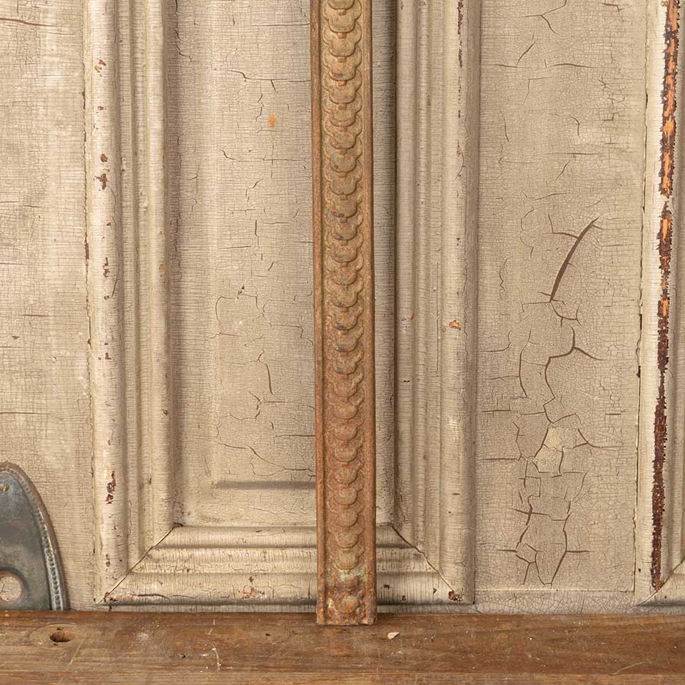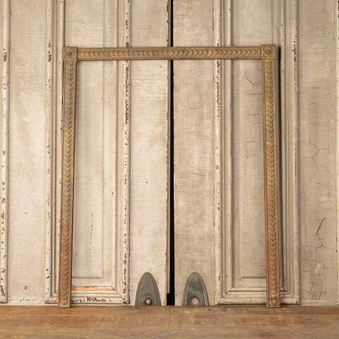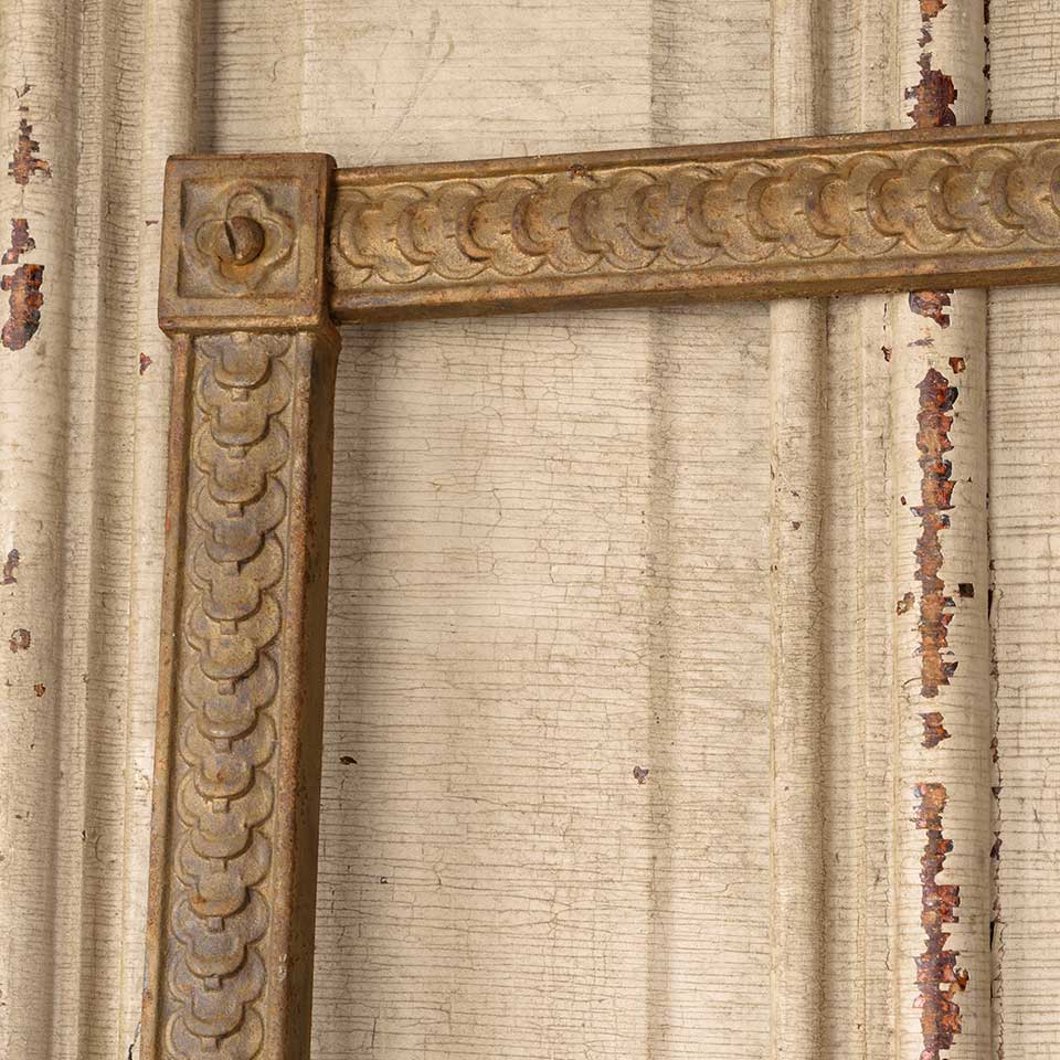 Architectural salvage antique cast iron fireplace surround measuring approx. 24 1/2" wide x 30" tall x 7/8" front to back. The interior firebox opening measures approx. 21 3/8" wide x 28 3/8" tall. See photos to evaluate condition.