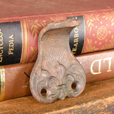 Architectural salvage antique ornate cast bronze window sash finger lift hardware measuring approx. 1 1/2" wide x 1 3/4" tall x 1" front to back. See photos to evaluate condition.