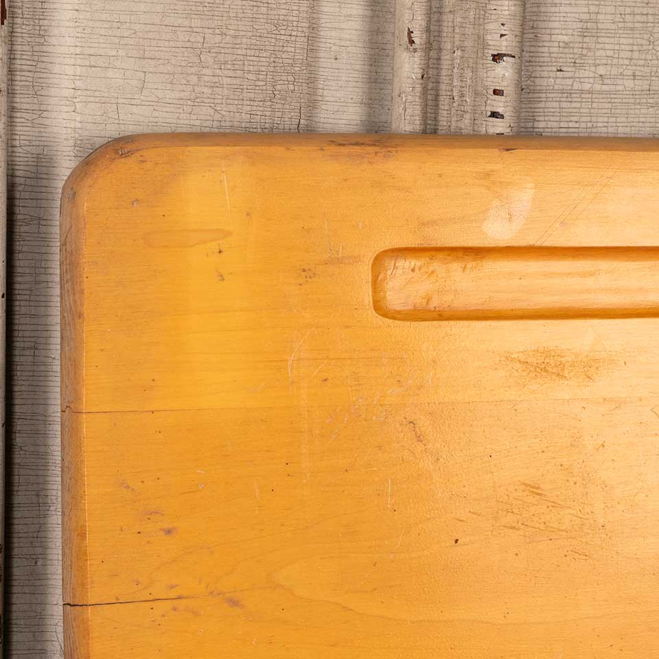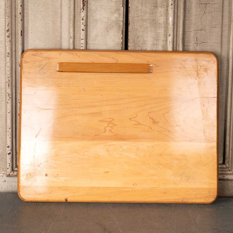Salvaged vintage solid wood school desk top measuring approx. 24" x 18 1/4" x 3/4" thick. Color, condition and size may vary. Priced at $15/each.