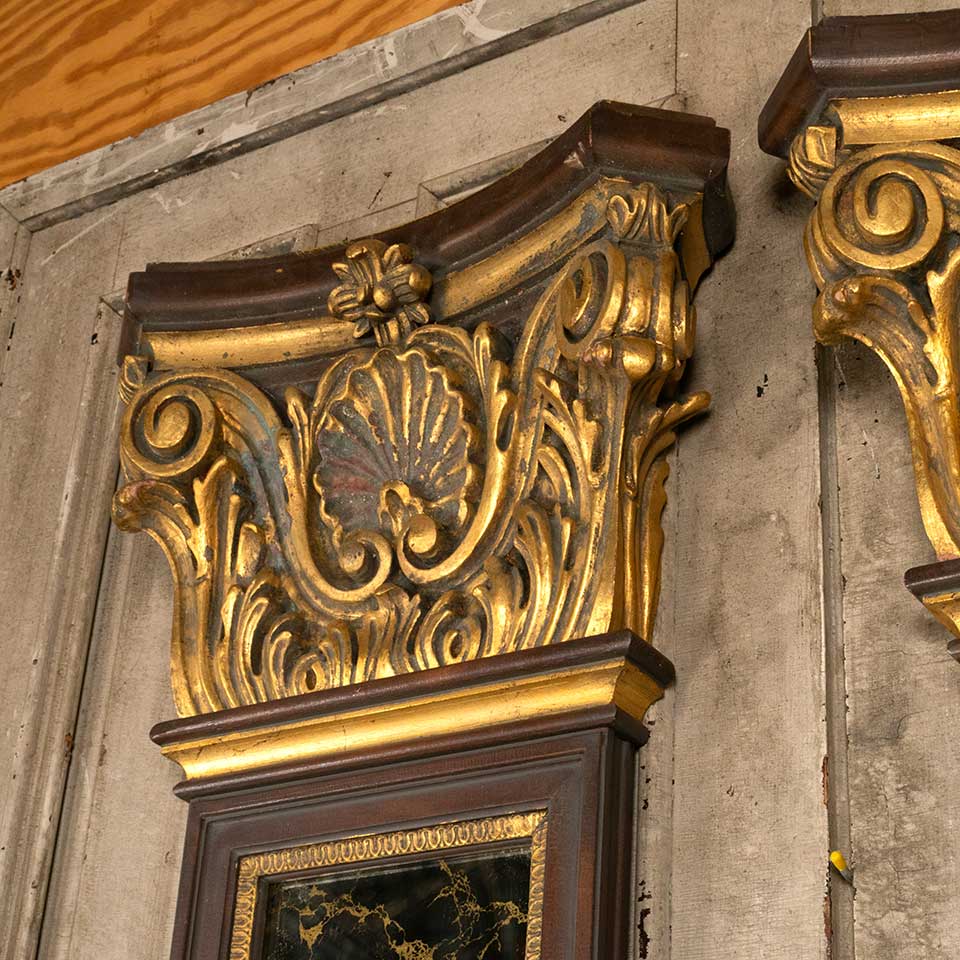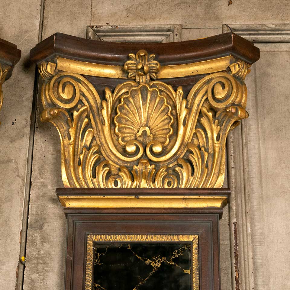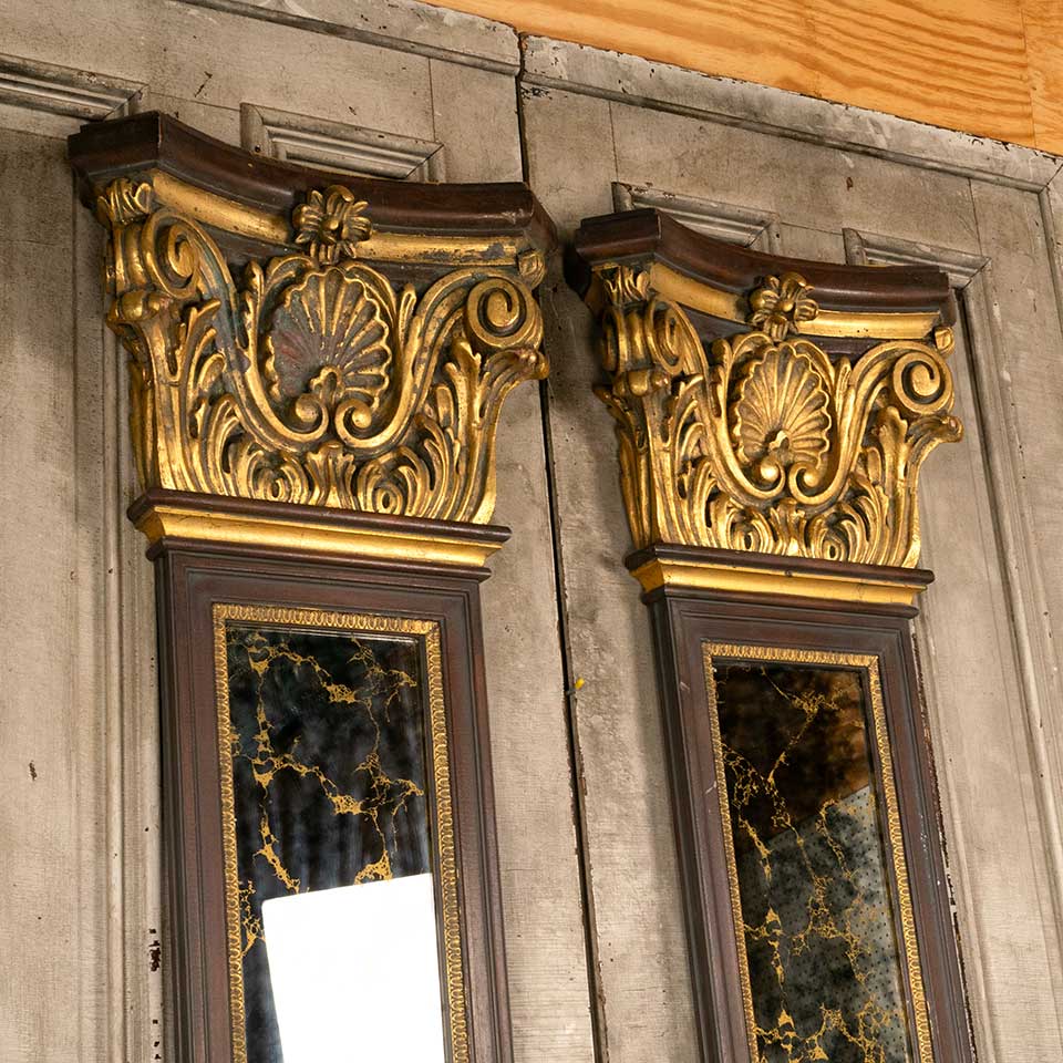 Pair of architectural salvage vintage Casa Bique Furniture mirrored column pilasters each measuring 23 1/2" wide x 95 1/2" tall x 5 1/2" front to back. See photos to evaluate condition. Priced at $4,500 for the pair.