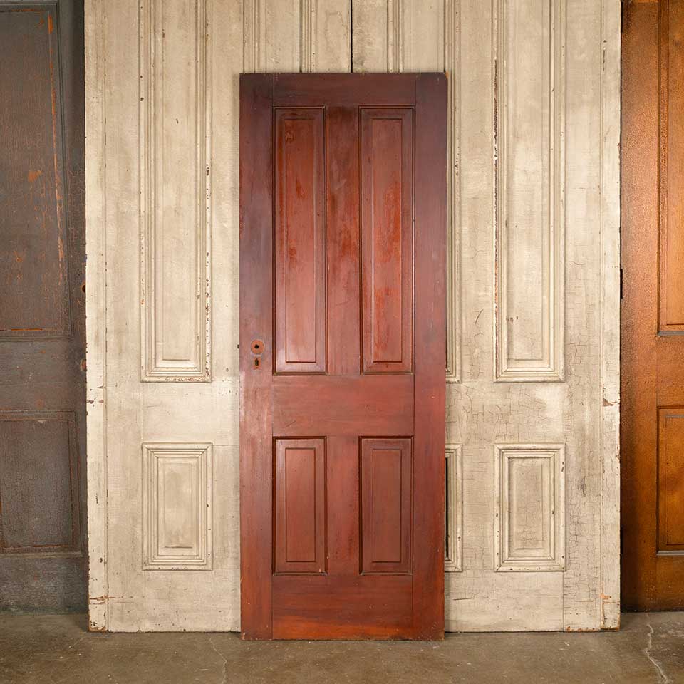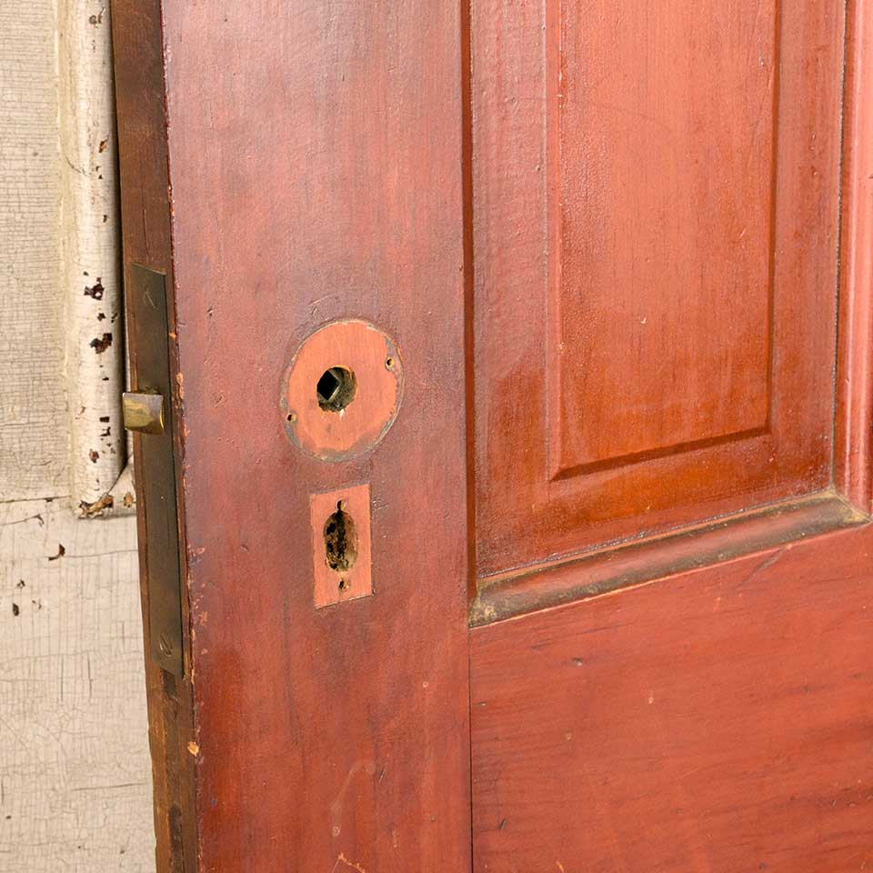 Architectural salvage antique pine wood four panel interior door with mortise lock measuring approx. 27 3/4" wide x 76 3/8" tall x 1 3/8" thick. See photos to evaluate condition.