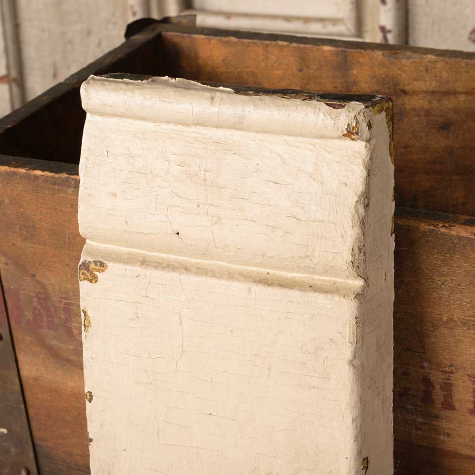 Architectural salvage antique painted wood interior door plinth trim block measuring approx. 5 3/8" wide x 10 1/8" tall x 1 3/8" thick. See photos to evaluate condition.