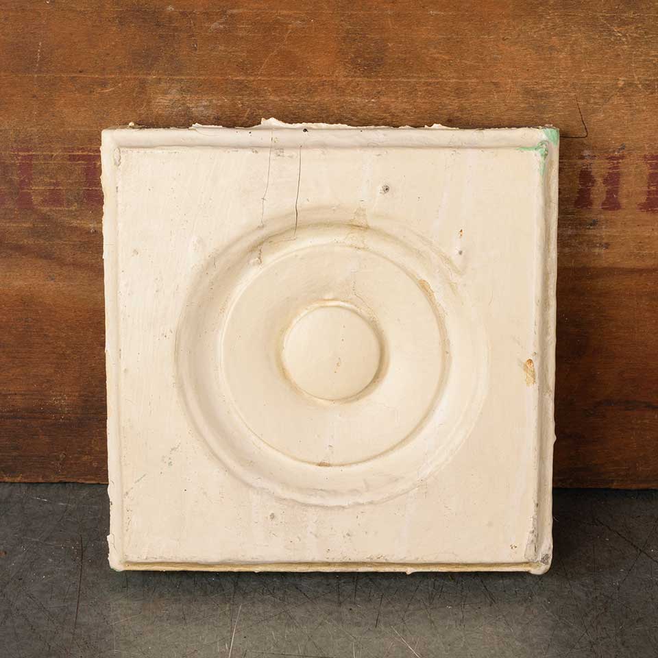 Architectural salvage antique interior window or door painted wood rosette trim block measuring approx. 6" x 5 7/8" x 1 1/8" front to back. Color and condition may vary, see photos to evaluate. Priced at $10/each.