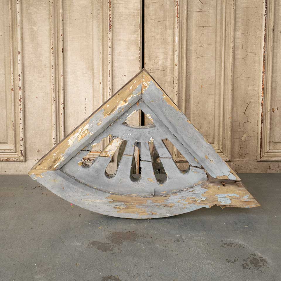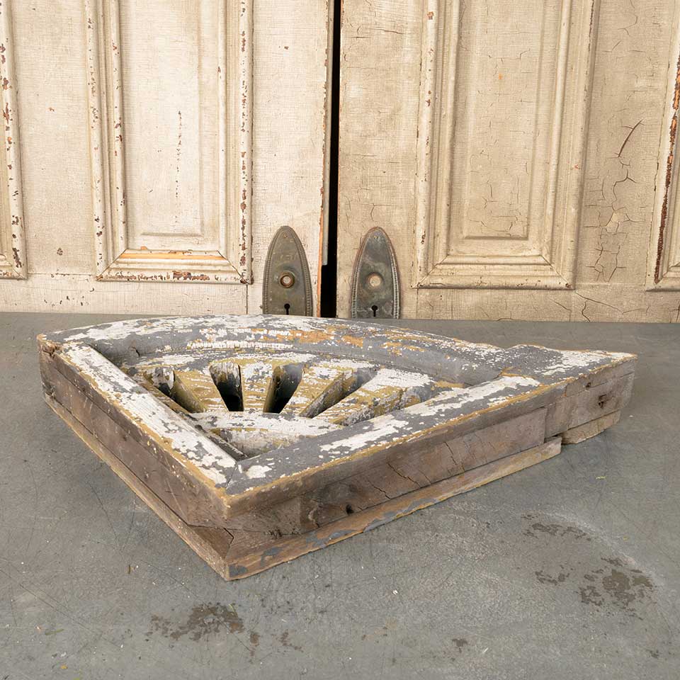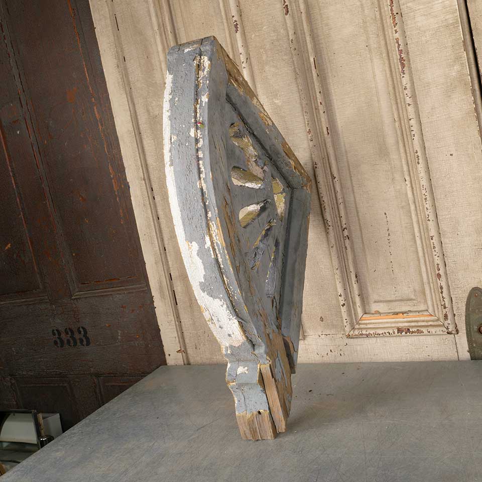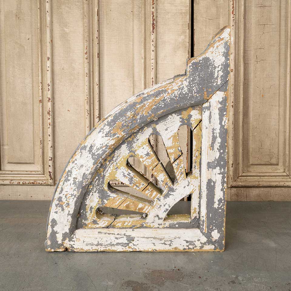 Architectural salvage antique painted wood Victorian corbel house bracket with sunburst design measuring approx. 3 1/2" wide x 22" tall x 18" front to back. There's some wood loss. See photos to evaluate condition.