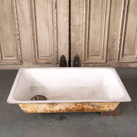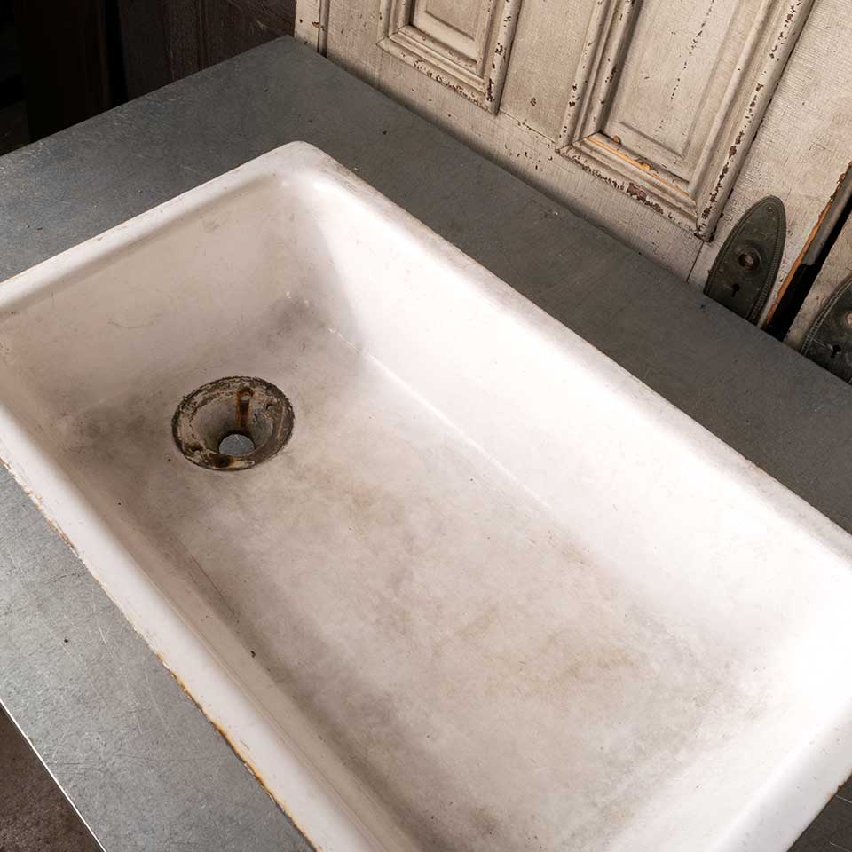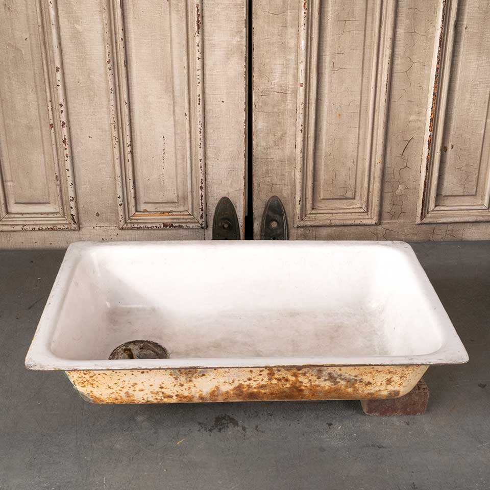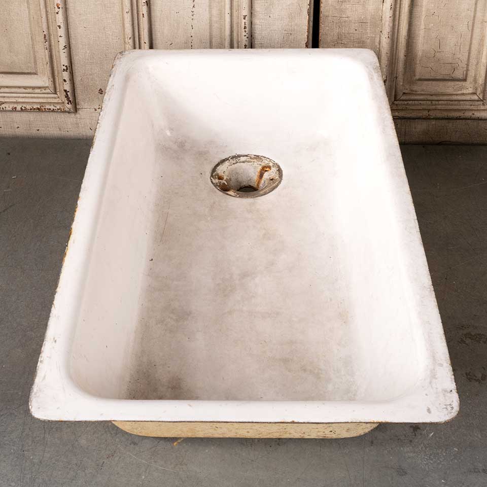 Architectural salvage antique cast iron porcelain enameled sink measuring approx. 30" x 18" x 9 1/2" tall with