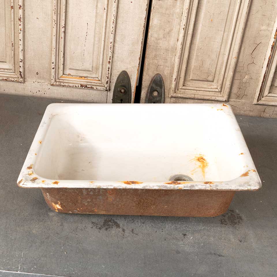 Architectural salvage antique cast iron porcelain enameled sink measuring approx. 24" x 18" x 7 1/4" tall with