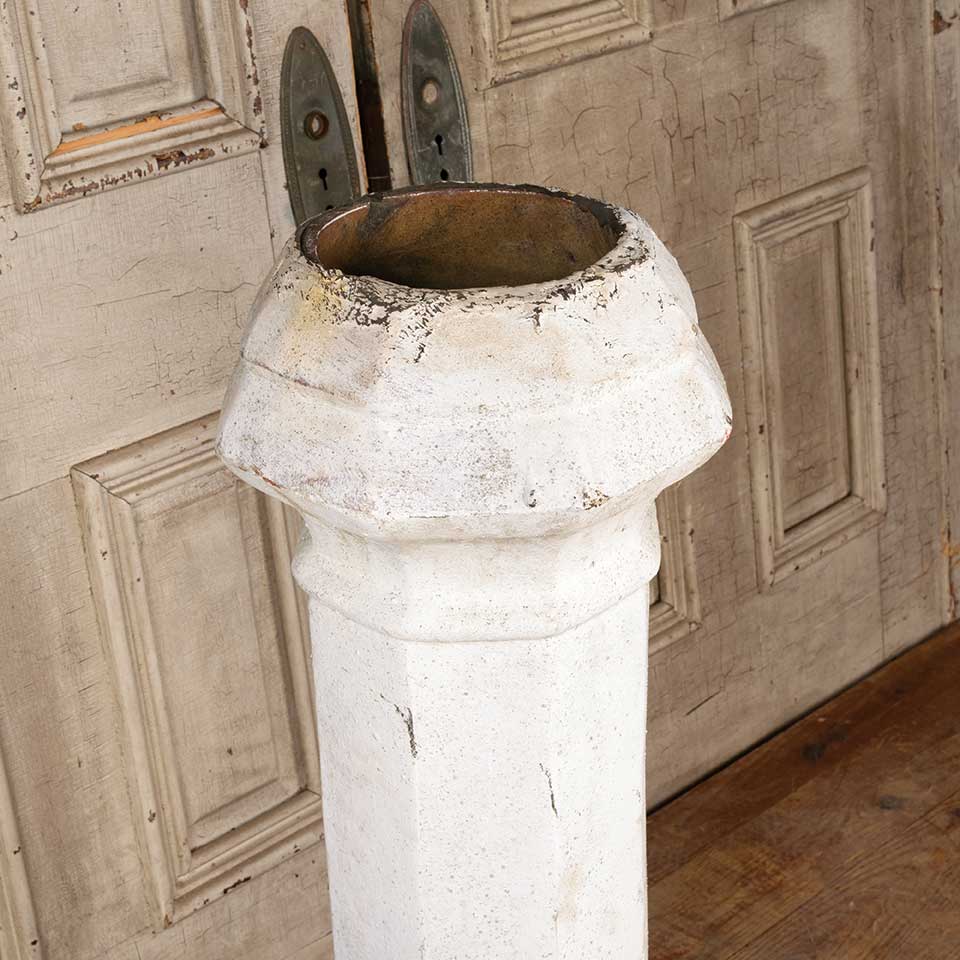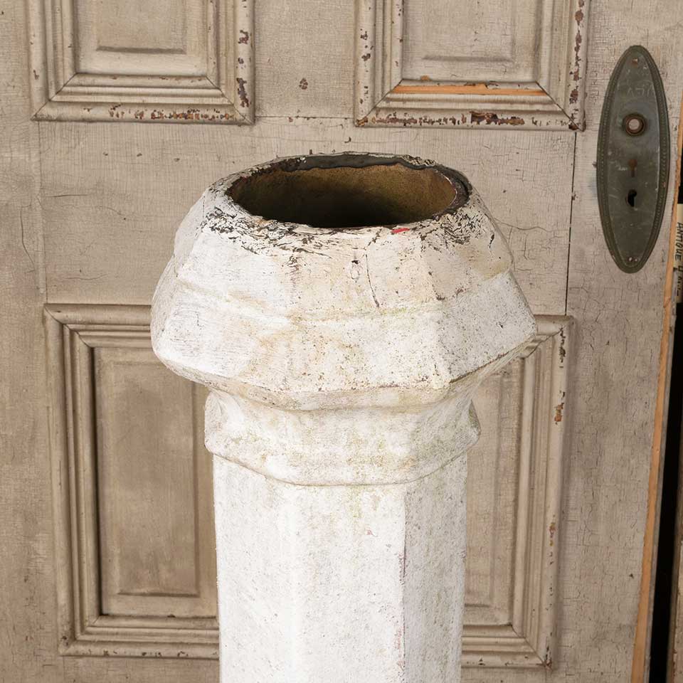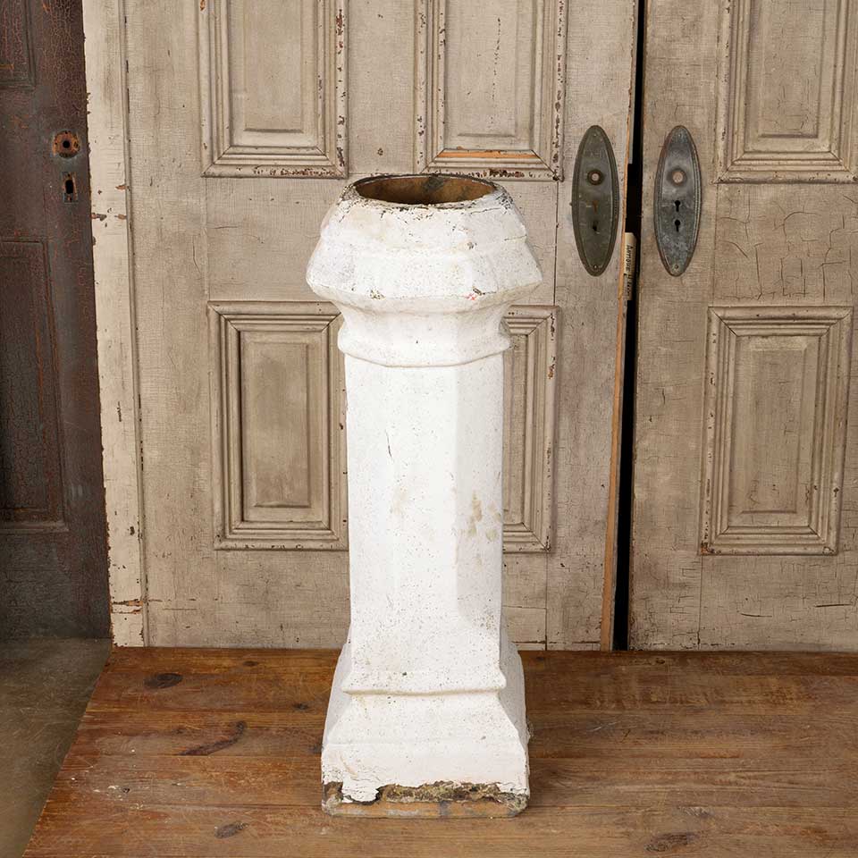 Architectural salvage antique painted terra cotta chimney pot measuring approx. 13" in diameter x 36 1/4" tall with a 12" x 12" base. These make great garden ornaments. See photos to evaluate condition.
