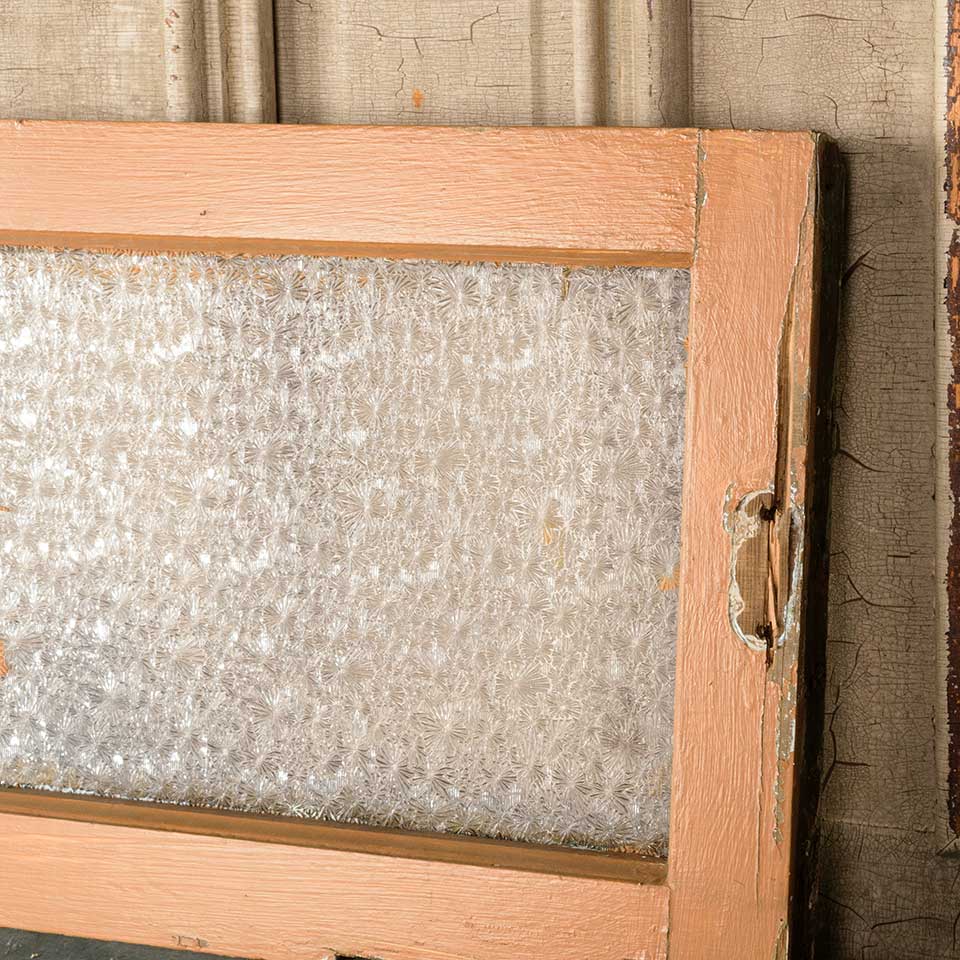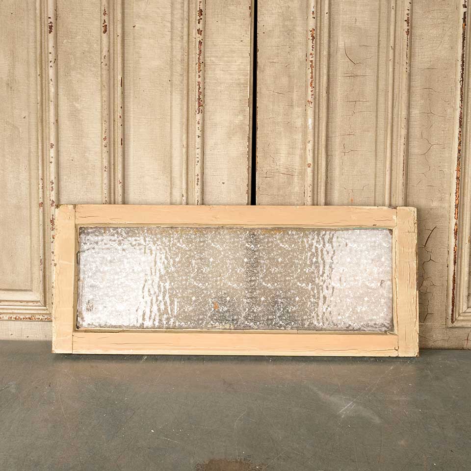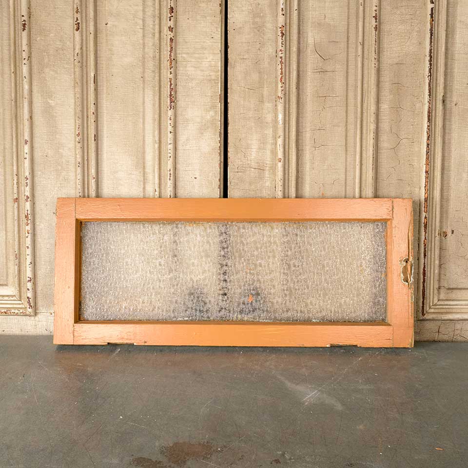 Architectural salvage antique painted wood transom window with Florentine pressed privacy glass measuring approx. 34 1/4" wide x 14" tall x 1 3/4" thick. See photos to evaluate condition.