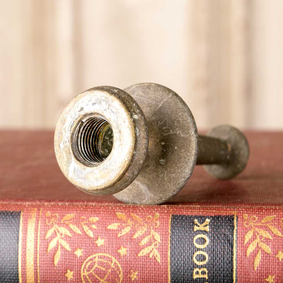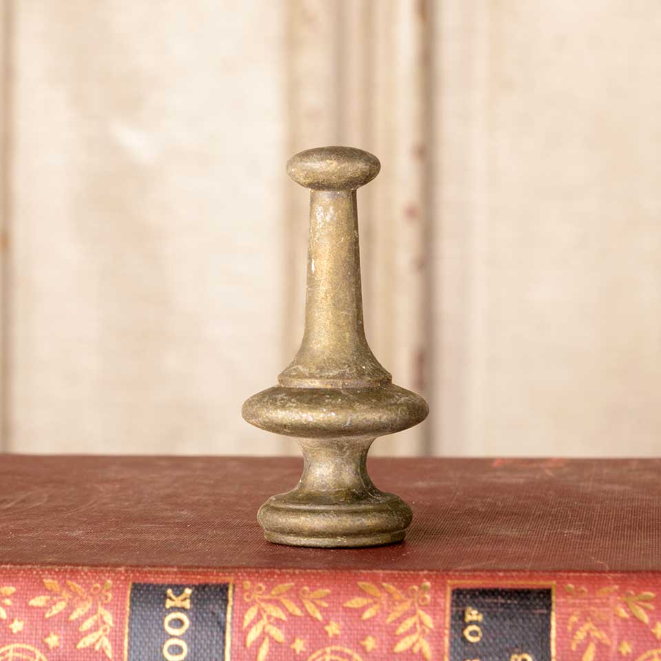 Architectural salvage vintage brass lamp shade finial hardware measuring approx. 1" wide x 2 1/4" tall with a 7/8" diameter base and a 1" diameter threaded hole opening. Color and condition may vary.