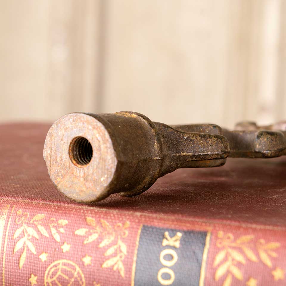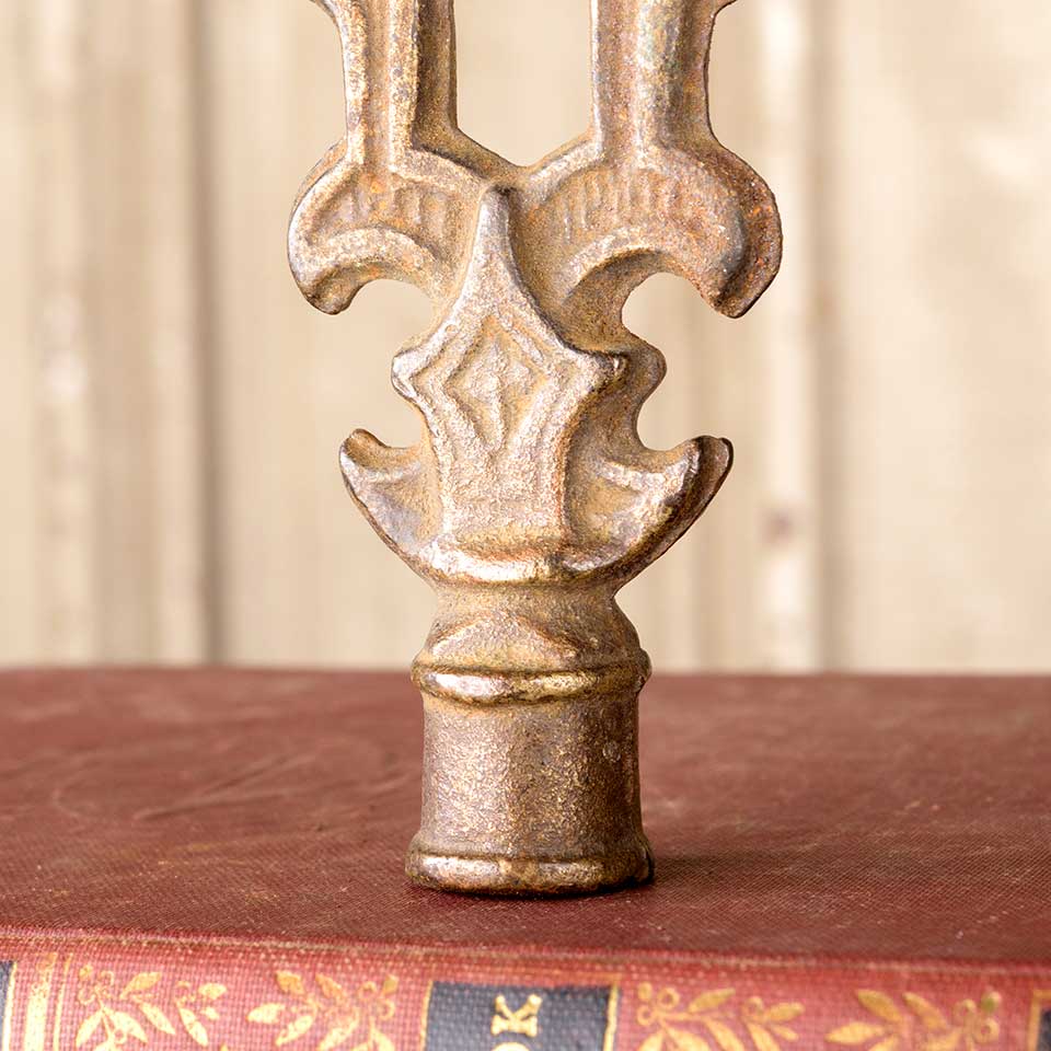 Architectural salvage antique cast iron lamp shade finial hardware measuring approx. 1 7/8" wide x 4 1/2" tall with a 7/8" diameter base and a 1/4" diameter threaded hole opening. See photos to evaluate condition.