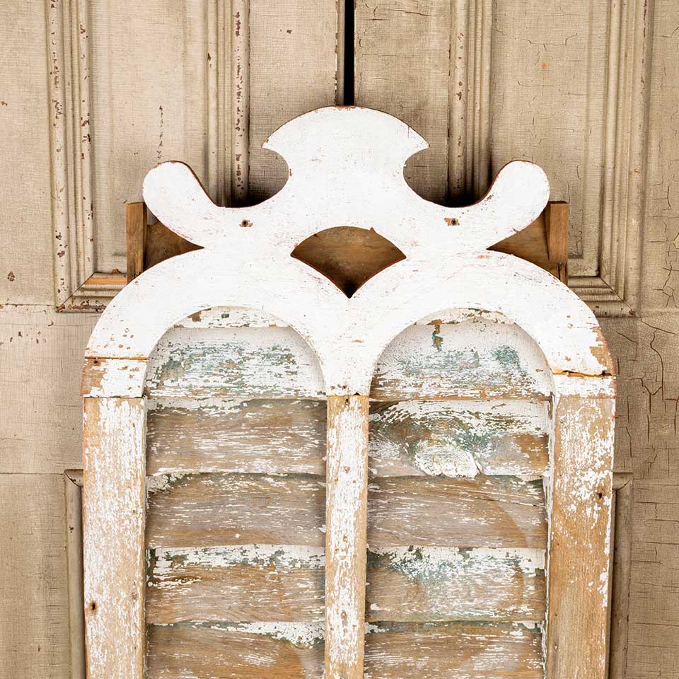 Architectural salvage antique Victorian wood louvered barn vent measuring approx. 26 1/8" wide x 44 1/2" tall x 5" front to back. See photos to evaluate condition.