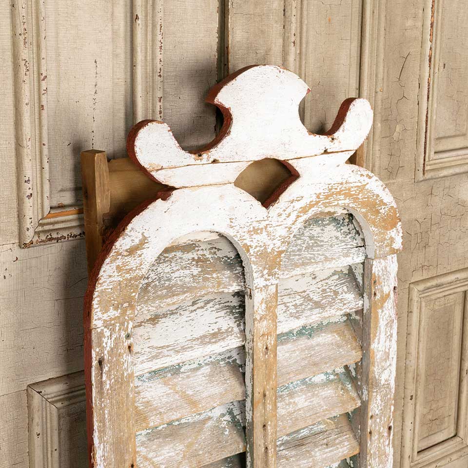 Architectural salvage antique Victorian wood louvered barn vent measuring approx. 25 7/8" wide x 43 3/4" tall x 5" front to back. See photos to evaluate condition.