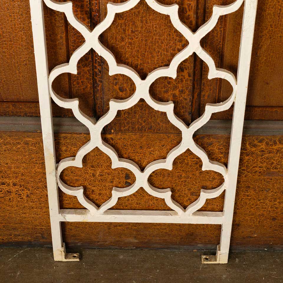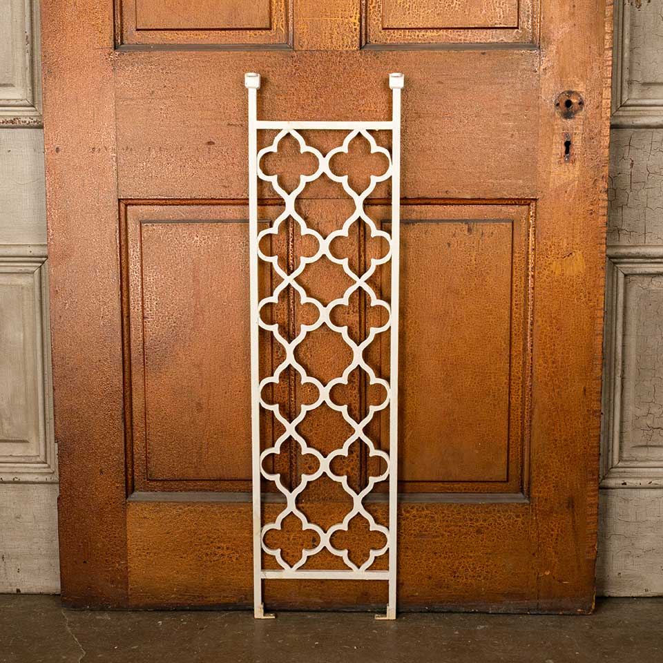 Architectural salvage vintage painted cast iron stairway / staircase vertical railing panel measuring approx. 10 1/4" wide x 38 3/8" tall x 1/2" front to back. See photos to evaluate condition.